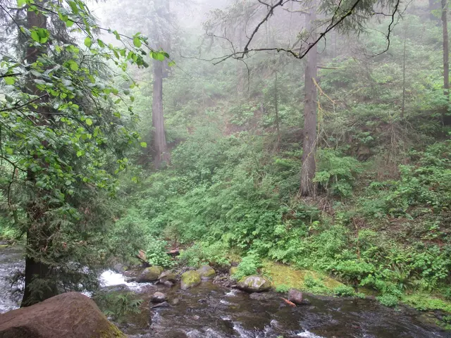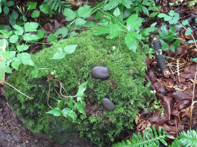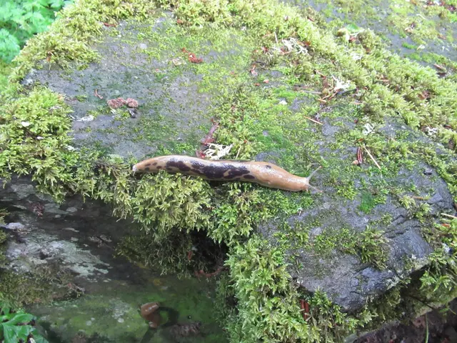 After being well feed, we stopped at the Lewis and Clark State Recreation Site that we saw on the way into to Troutdale. It has a botanical garden walk with plant labels. I liked the rocks in the moss in this picture. They found more banana slugs that they had to "pet". The slugs were not a fans of being petted; they retracted their antenna and mouth parts into their body, interesting.