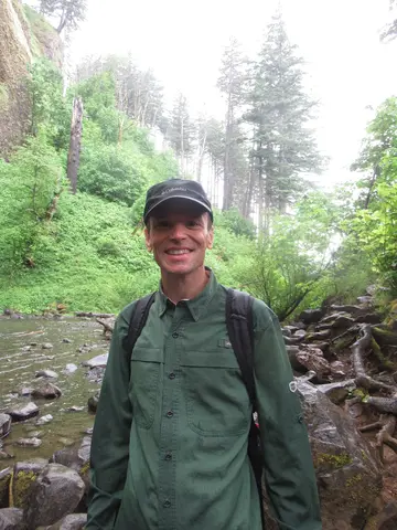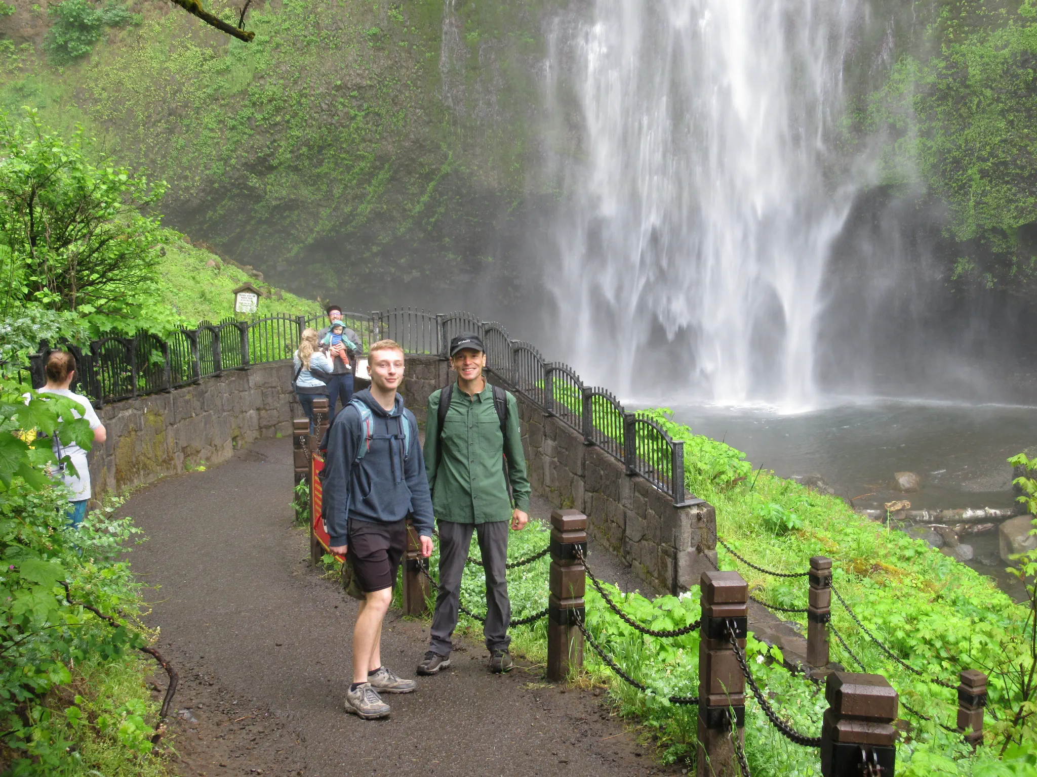 The source of Multnomah Falls, thinking of on Top Gear where their challenge was to find the source of the River Nile. Joel at the "real" upper Multnomah Falls; the long one is really the middle falls -- hehe.
