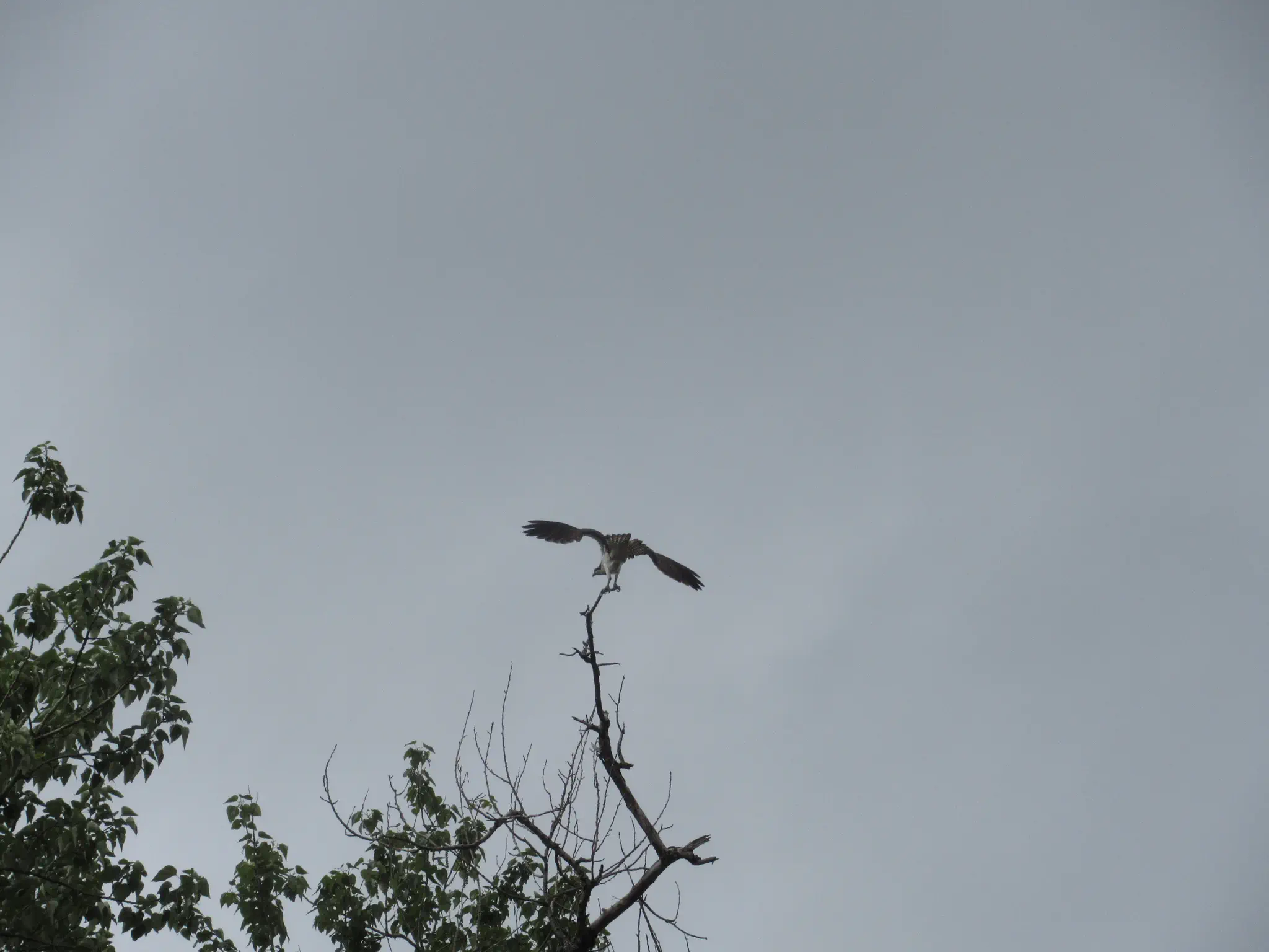 On the way back east, we stopped at Rooster State Park at exit 25. It was a pay state park. With our campsites, it was published, on the Oregon State Park website where booking the camping, that we could visit any State Park using the campsite purchase as the pass for the days camped. So, I printed the camping reservation info to put in the windshield for this purpose. The sign at the entrance station did not mention this and did not have anyone working it to ask, so we were unsure. We did go in and drive around. It was primarily for boating and boat launch access; this park had tons and tons of parking lots lining the river. It was very bazaar; I do not know when they would have ever needed that much parking. We got out for just a bit. We found an osprey flying over the river, and a squirrel showing off, playing in the sand.
