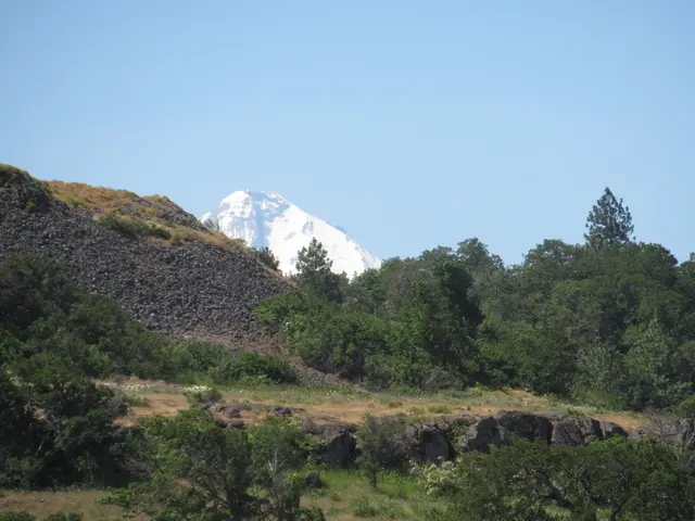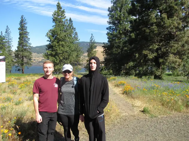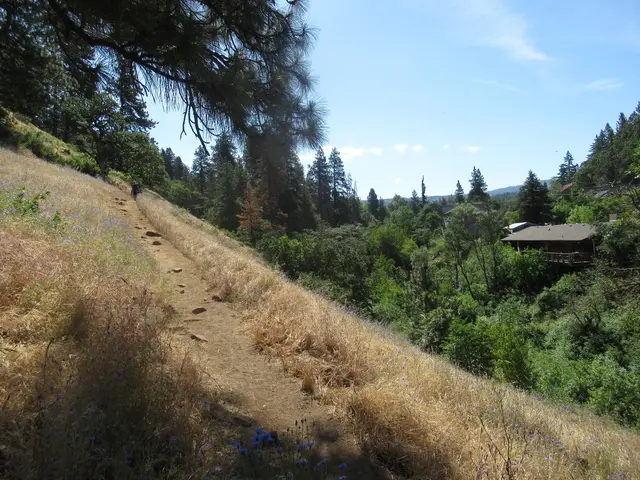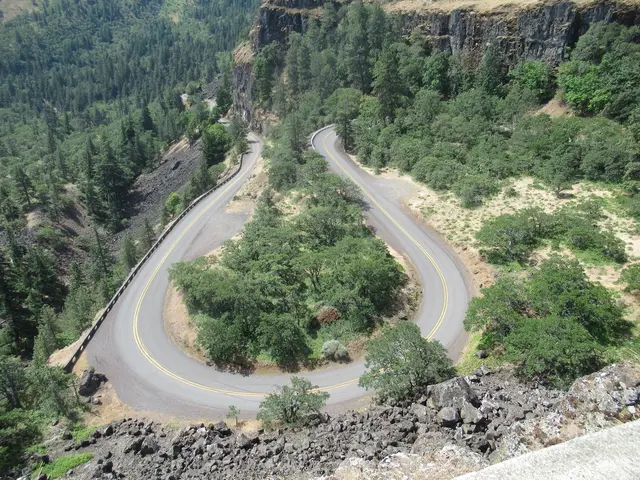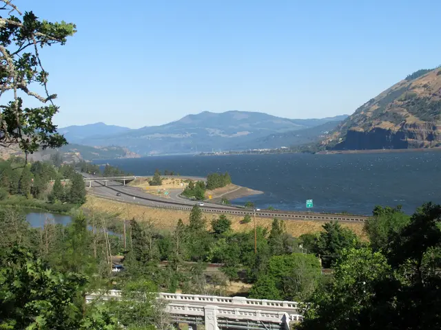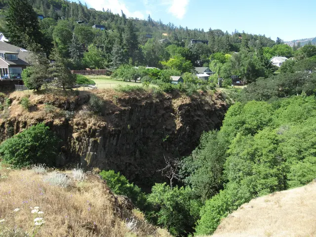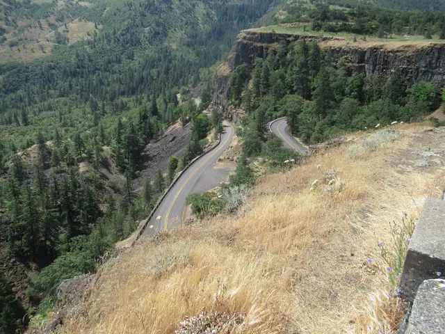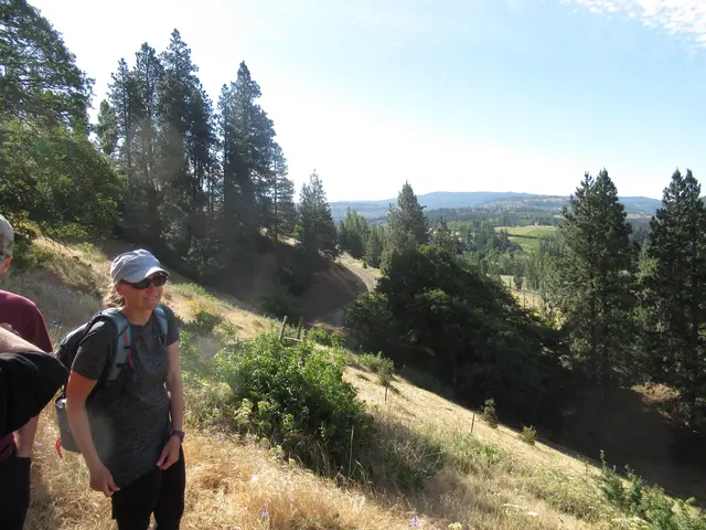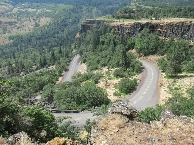 The turn around from not being able to go east from the campground was near Mosier. Travis found a hike and parking for the hike in the town of Mosier. It was interesting because the lot was a little walk from the trailhead and had some EV charging stations, noting that you could only park there while charging. We parked right next to it and wondered if that was okay. Then we found, past the "no parking" signs on private property, that there was a bigger lot closer to the river. It all worked out.
