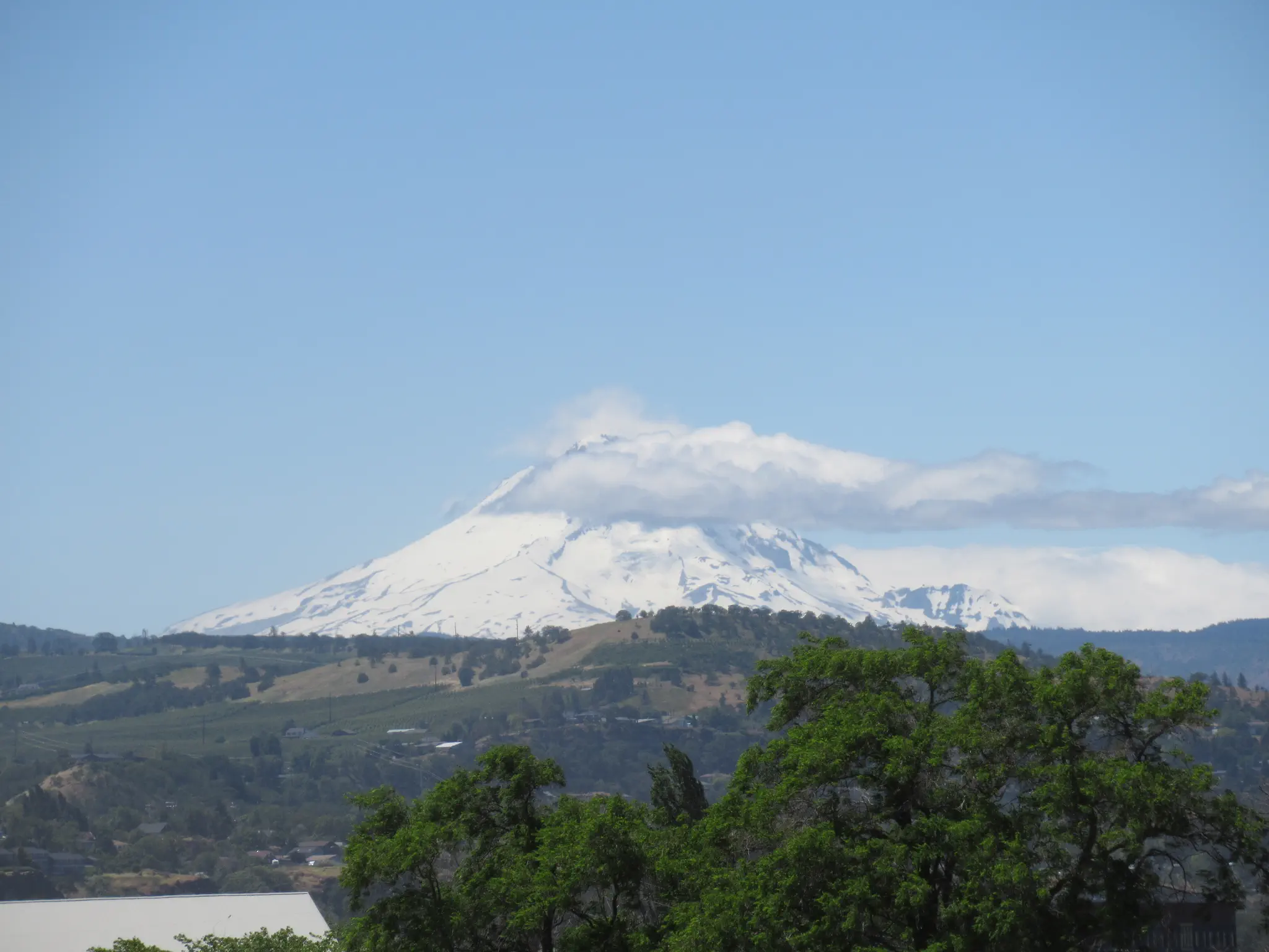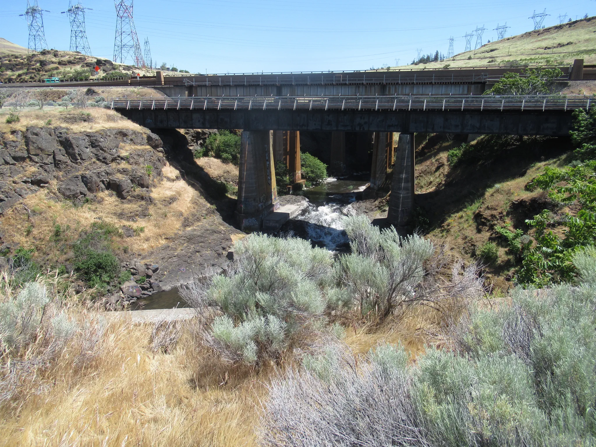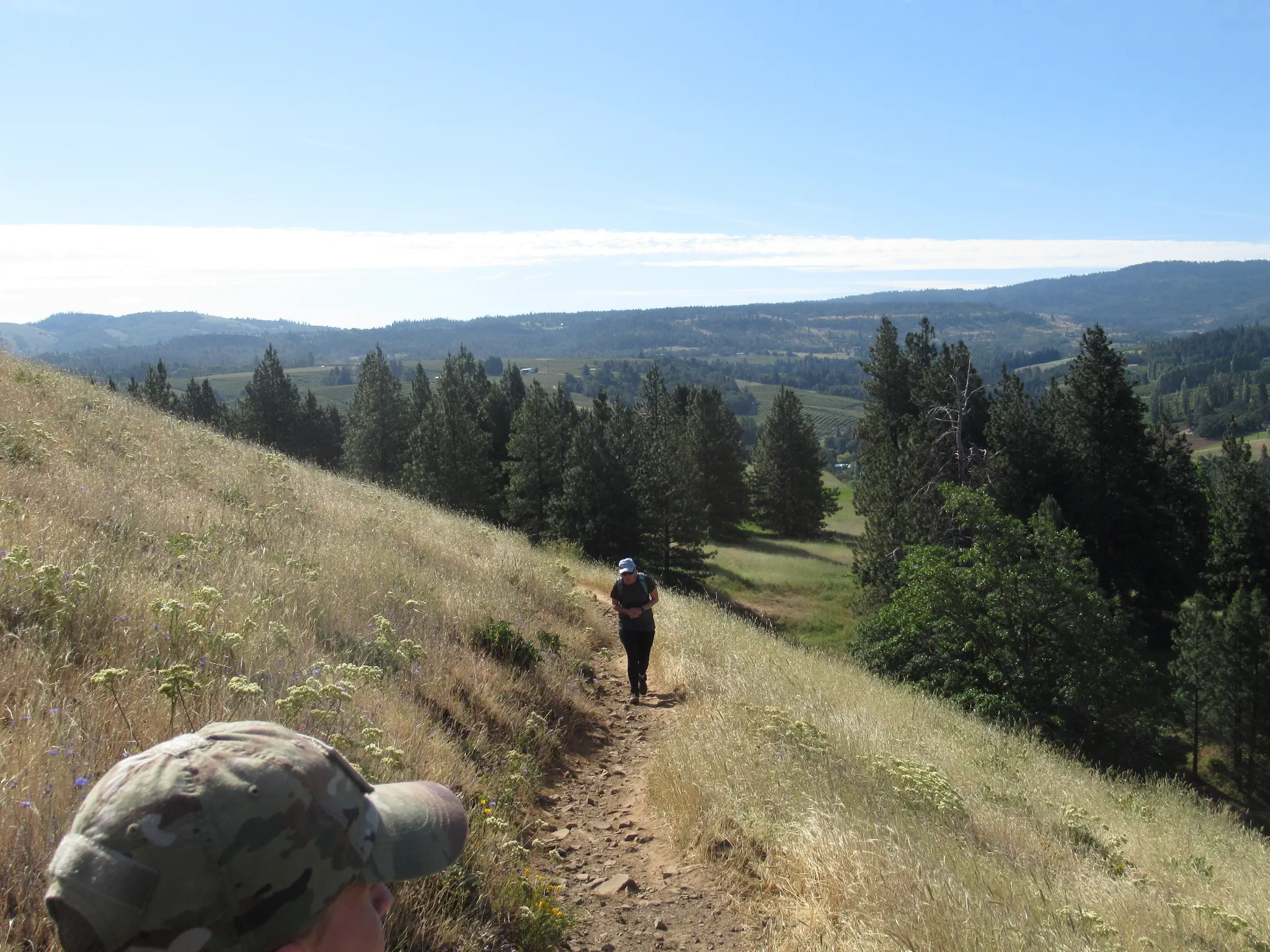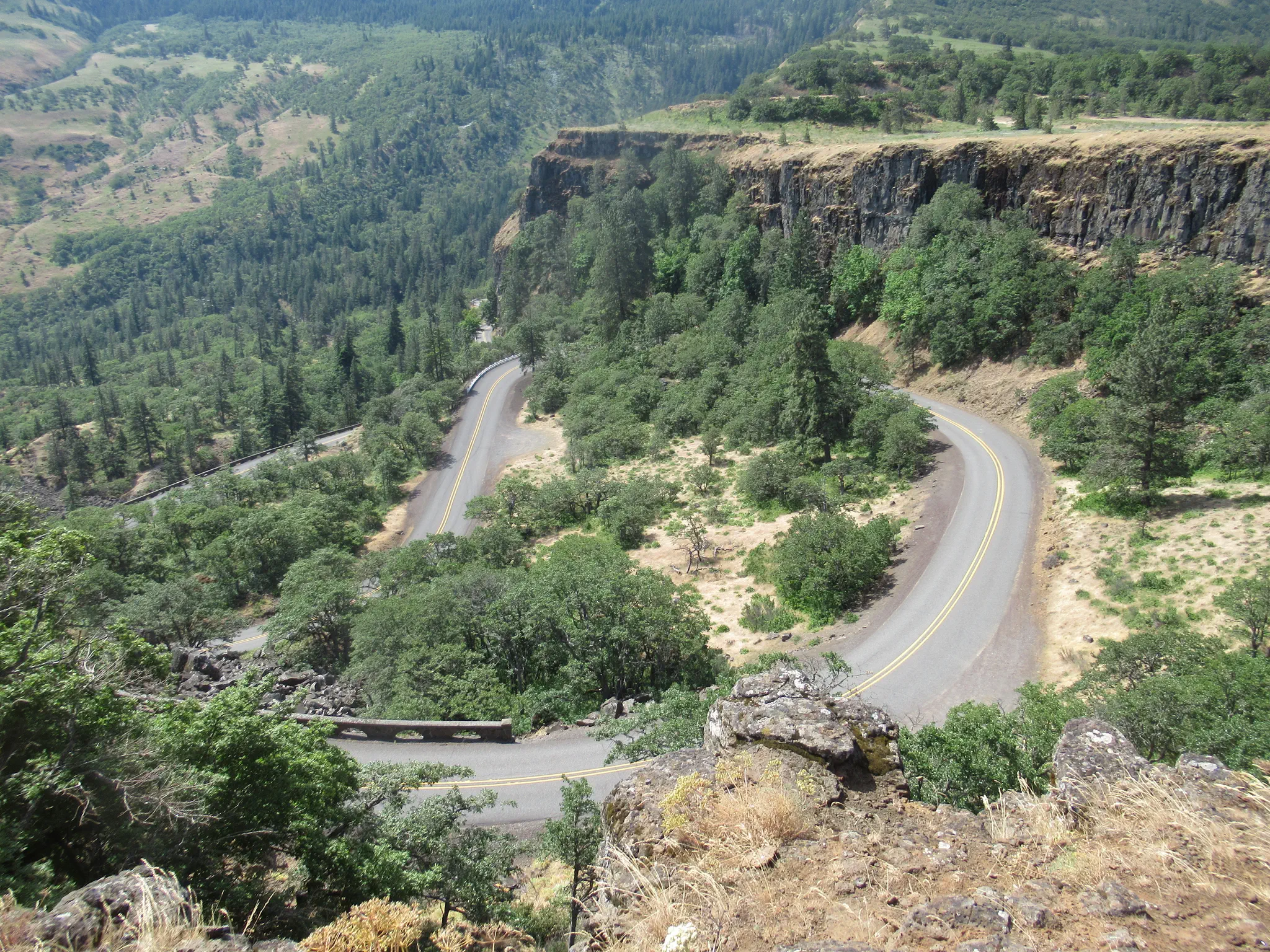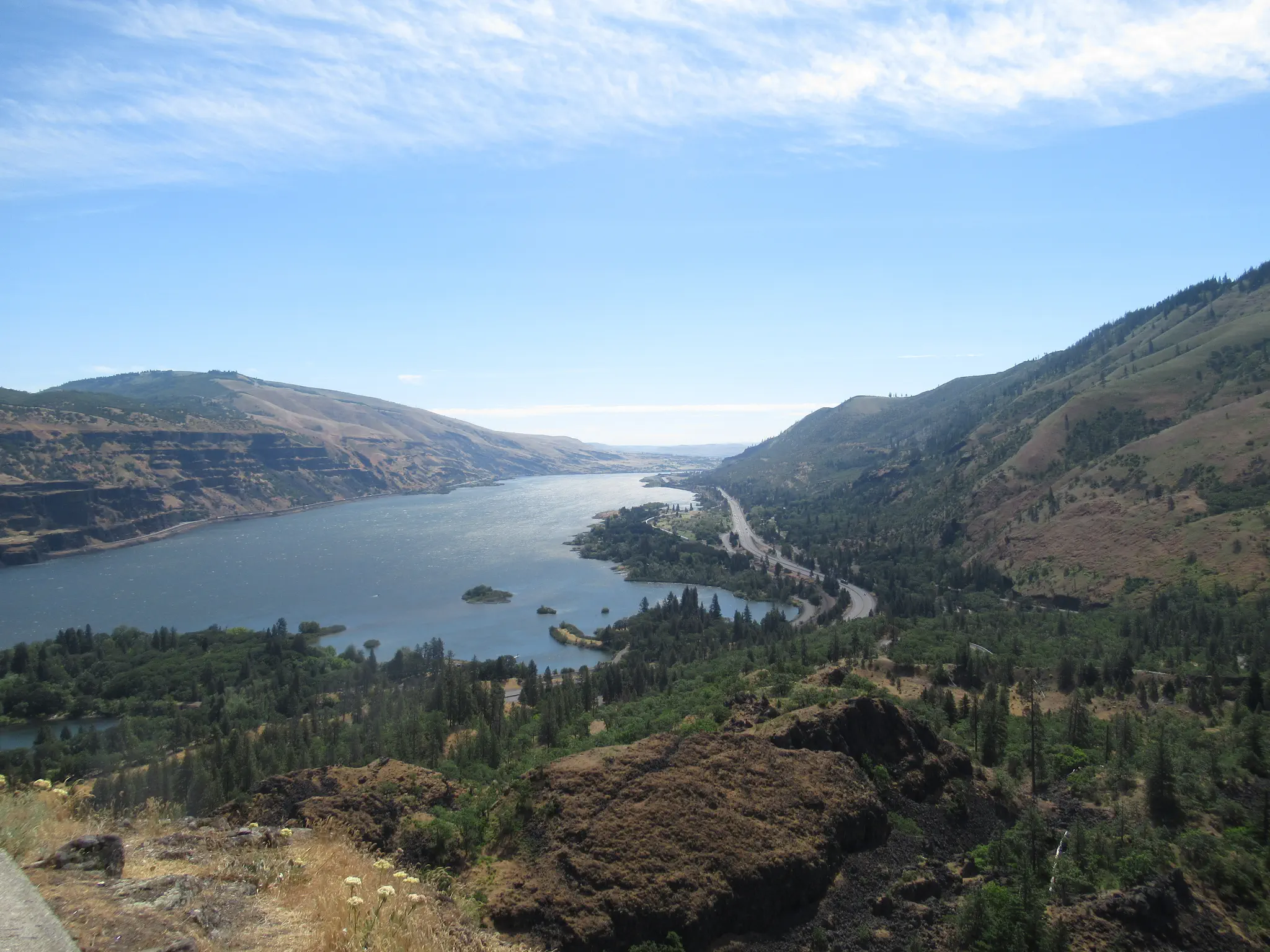 The trail was called Mosier Plateau Trail. It had some uphill and switchbacks with good views, a gorge, a waterfall, and wildflowers. There were awesome houses overlooking the gorge and waterfall. We are definitely on the dry side of Oregon now. In hindsight, I should have planned at least one more night on the wet side; it is just so pretty with the greens and waterfalls.