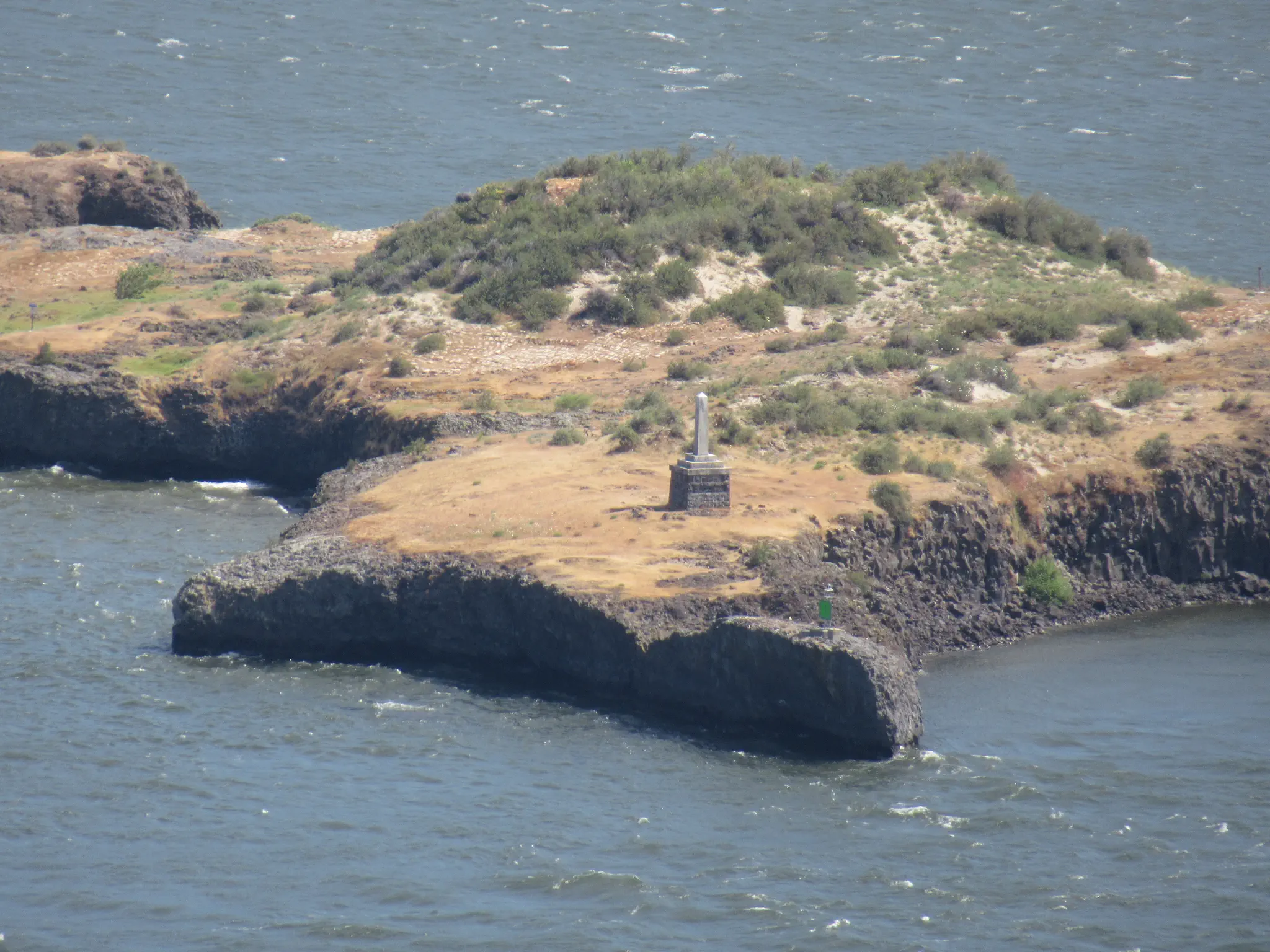 Memaloose Island across from our campsite with a gravestone for a Congressman.