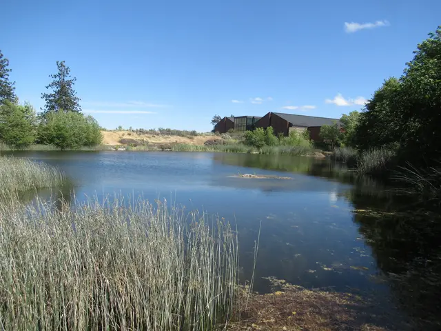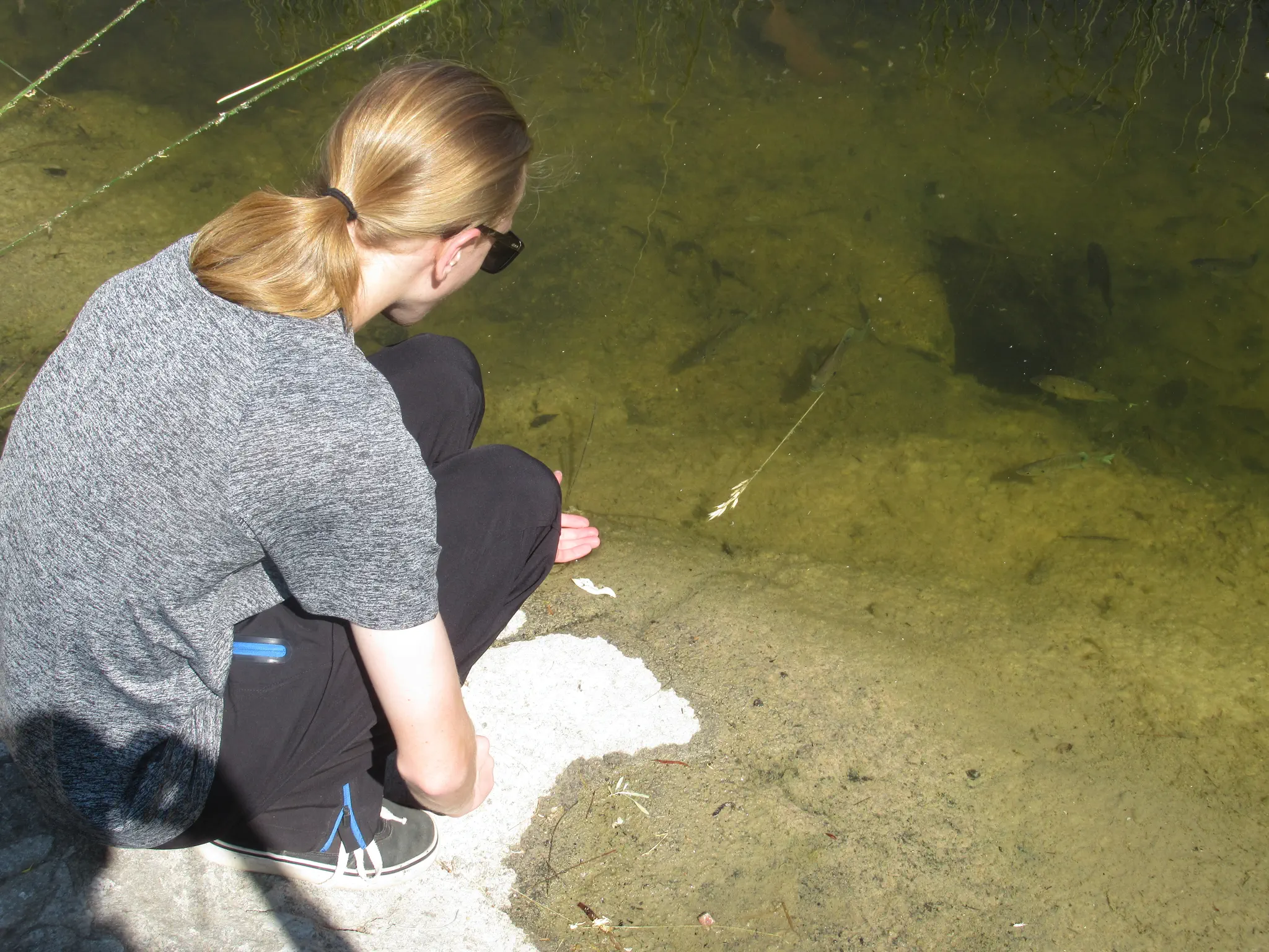 Our last stop in The Dalles today was to hike around the Columbia Gorge Discovery Center & Museum. A guy was watching at a pond. I thought that looked interested and joined and then the family came too. He pointed out a bass trying to eat a frog that was much bigger than the bass. We could see the frog making attempted leaps out of the water. The frog did get away. Owen trying to be a fish whisperer and bring them to his hand.