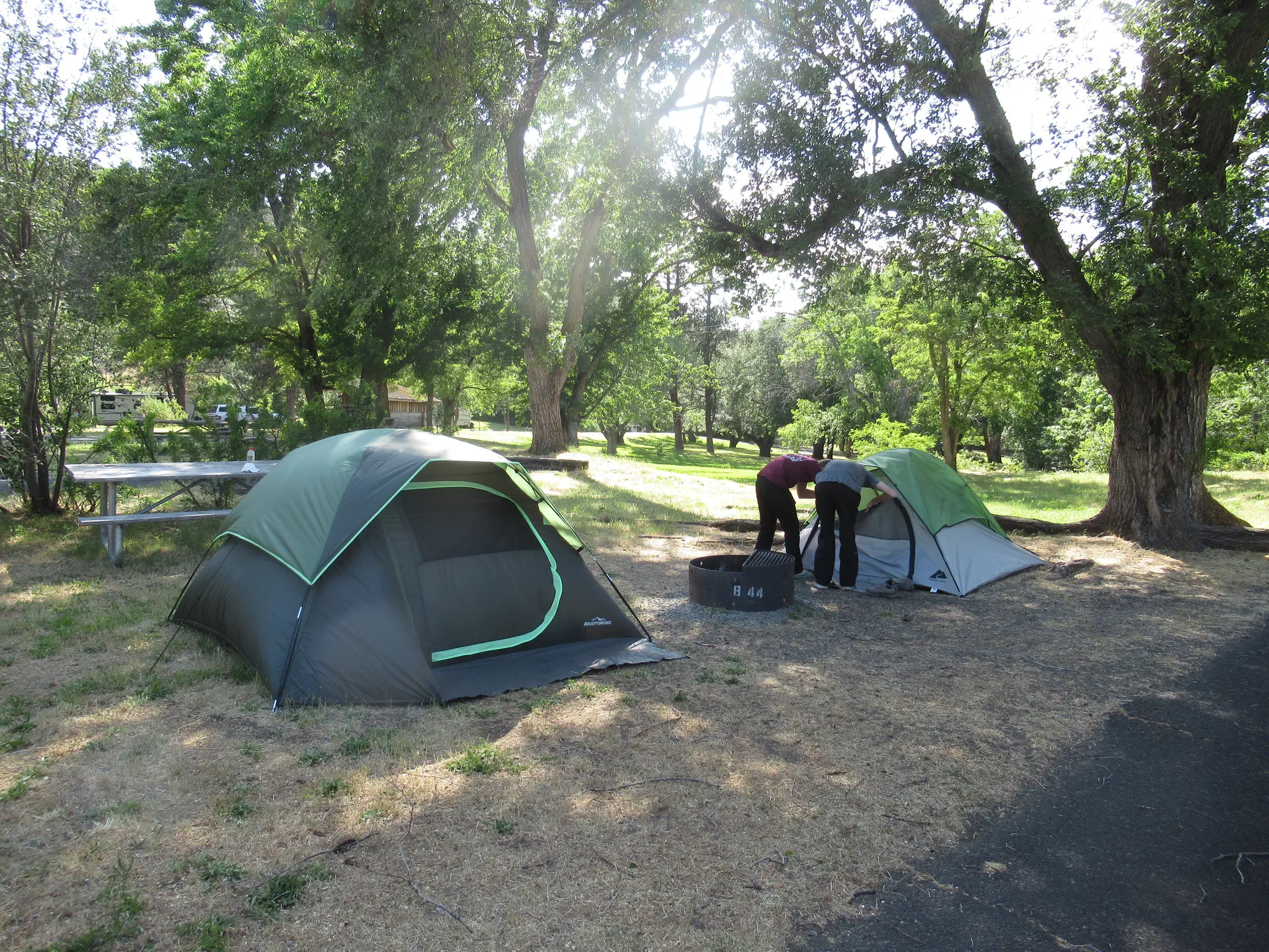 Finally, it was back to the campground where we found the kids' tent especially folding over on top of the air mattress with the wind. It was still windy. Ours is blown out in this picture too. They did much prefer this campsite with the slope that slide their air mattress down and pushed it through one side of the tent, trying to tear up the tent. I ate dinner in the car; luckily, the wind slow down in time for bed.