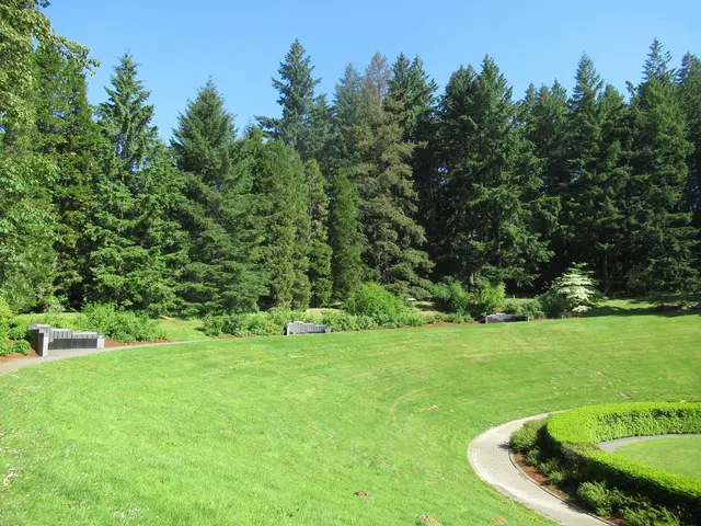 It was now time to explore the city. Unfortunately, we started the drive in rush hour, so it was stop and go traffic. Our first stop was parking in Washington Park in the Veterans Parking Lot; it was a pay lot. We did later see pull offs in the park that would have been free to park in. This was near, so we started in the Veterans Memorial, which is the cool circular walkway in the pictures below.