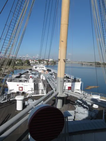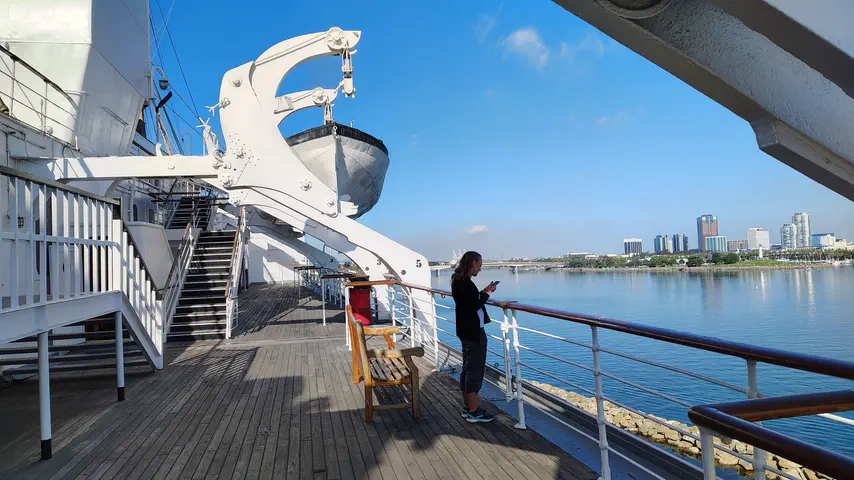 We stayed one night before the cruise in Long Beach on the historic, hotel-ship Queen Mary. I was very excited! We had a direct flight on American to LAX. We took a Lyft from home to the airport and back since this was a long trip to pay for parking at the airport. Unfortunately, we were traveling to the airport in rush hour both times, so they were both expensive. Both our drivers could not speak English, which I think should not be allowed for safety and navigation concerns. On our way home, the under construction highway had changed, my husband was trying to communicate to exit, but he did not understand and missed it, leaving us to go a ways to turn across in stopped rush hour traffic when we could have been home. Then I thought he was going to hit a barrack when my husband was trying to get him to exit after the turn around to not have to turn around again. Aqui! Lyft needs to fix this, or we need to pay more for Uber.
