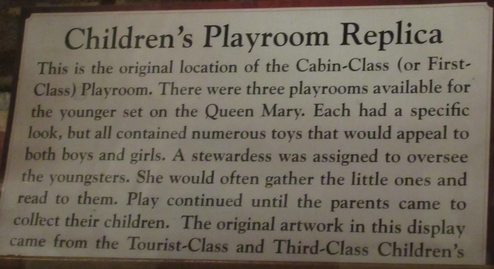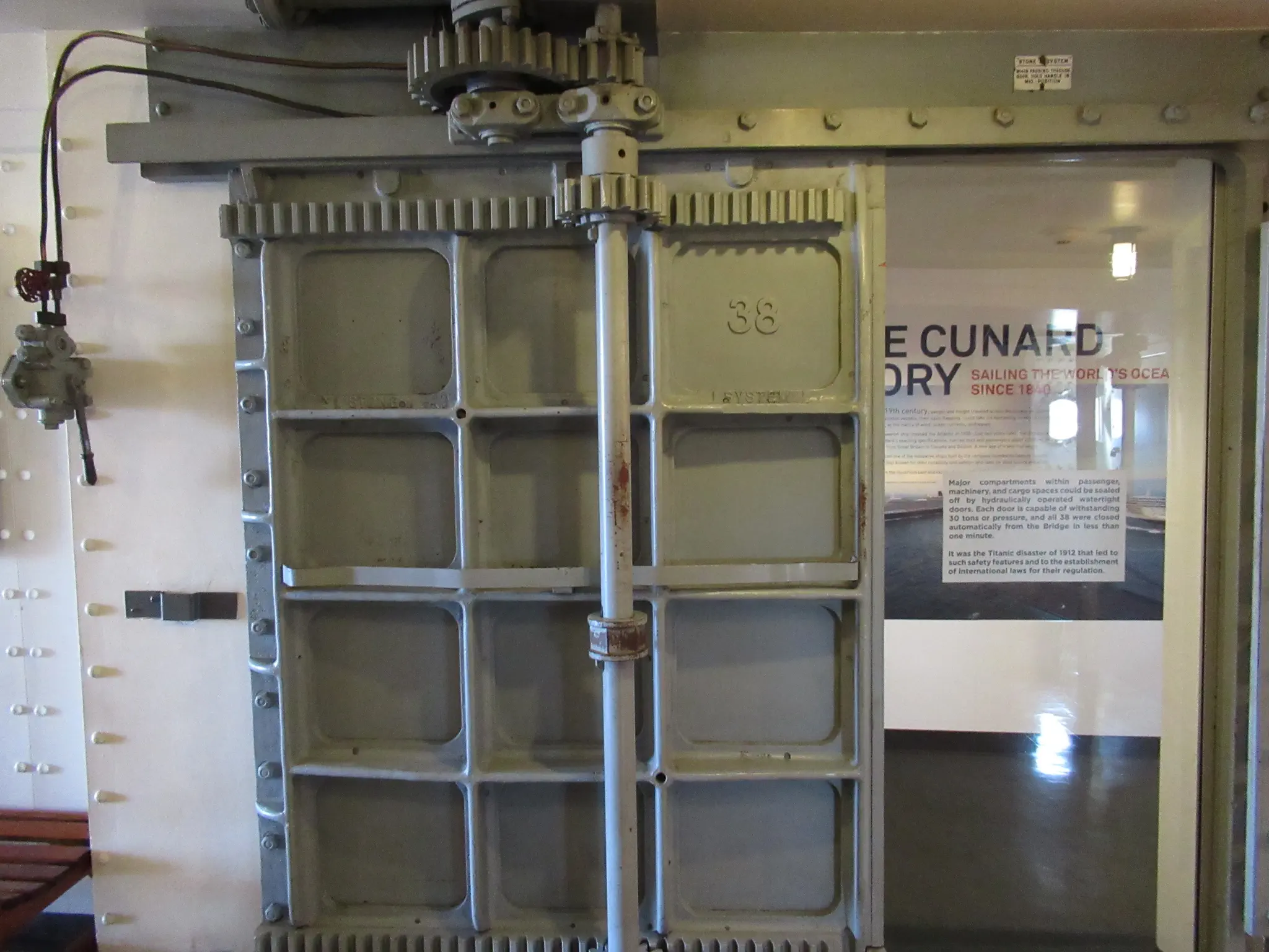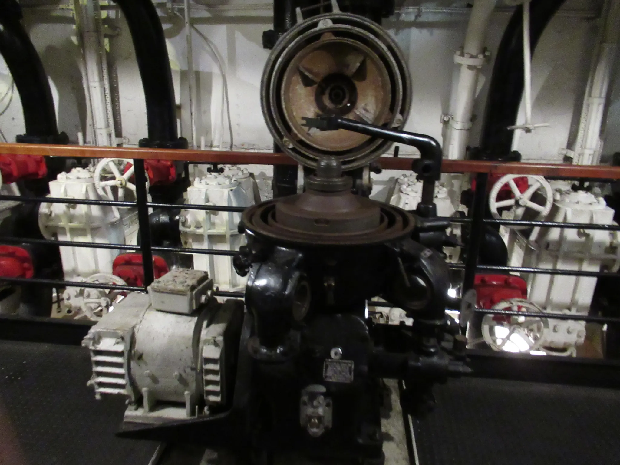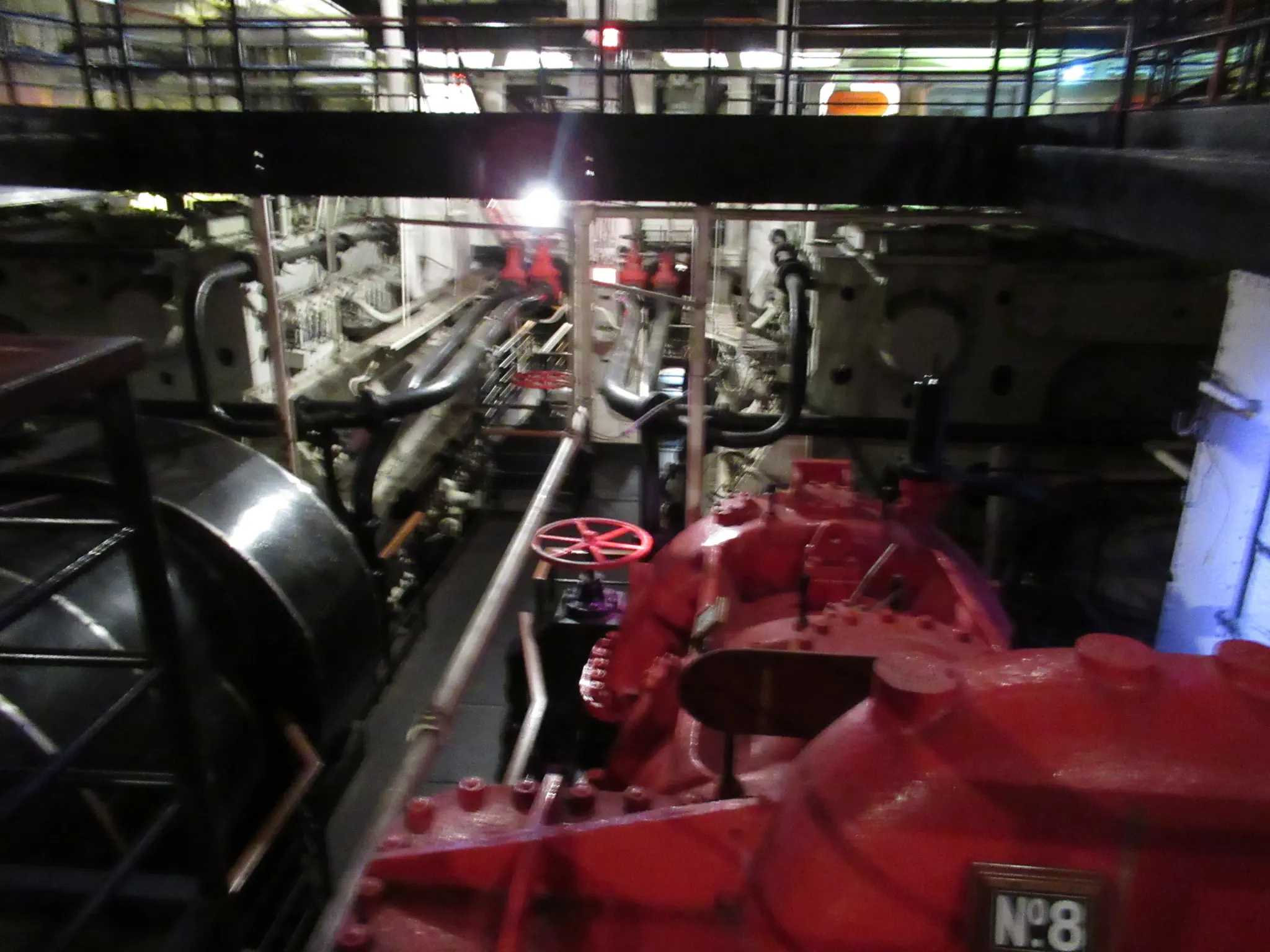 We first went to the engine room. It was massive -- over multiple rooms and decks. It is a steam engine; today, cruise ships commonly use diesel-electric propulsion. I have not toured a modern cruise engine room to know, but I imagine that this steam engine is larger. I did not get very good pictures because it was dark, but full, multiple parts of many engine rooms were on display.