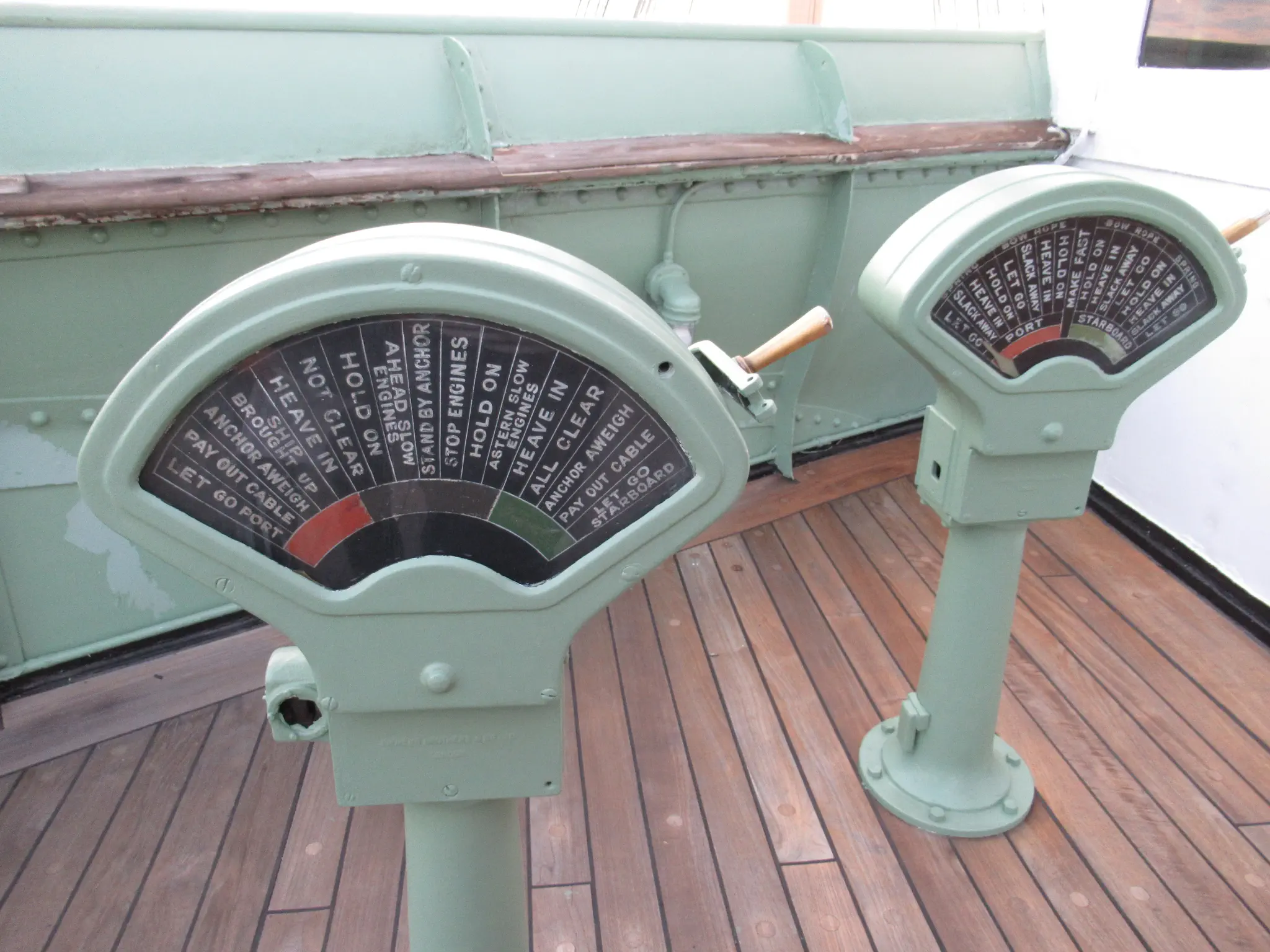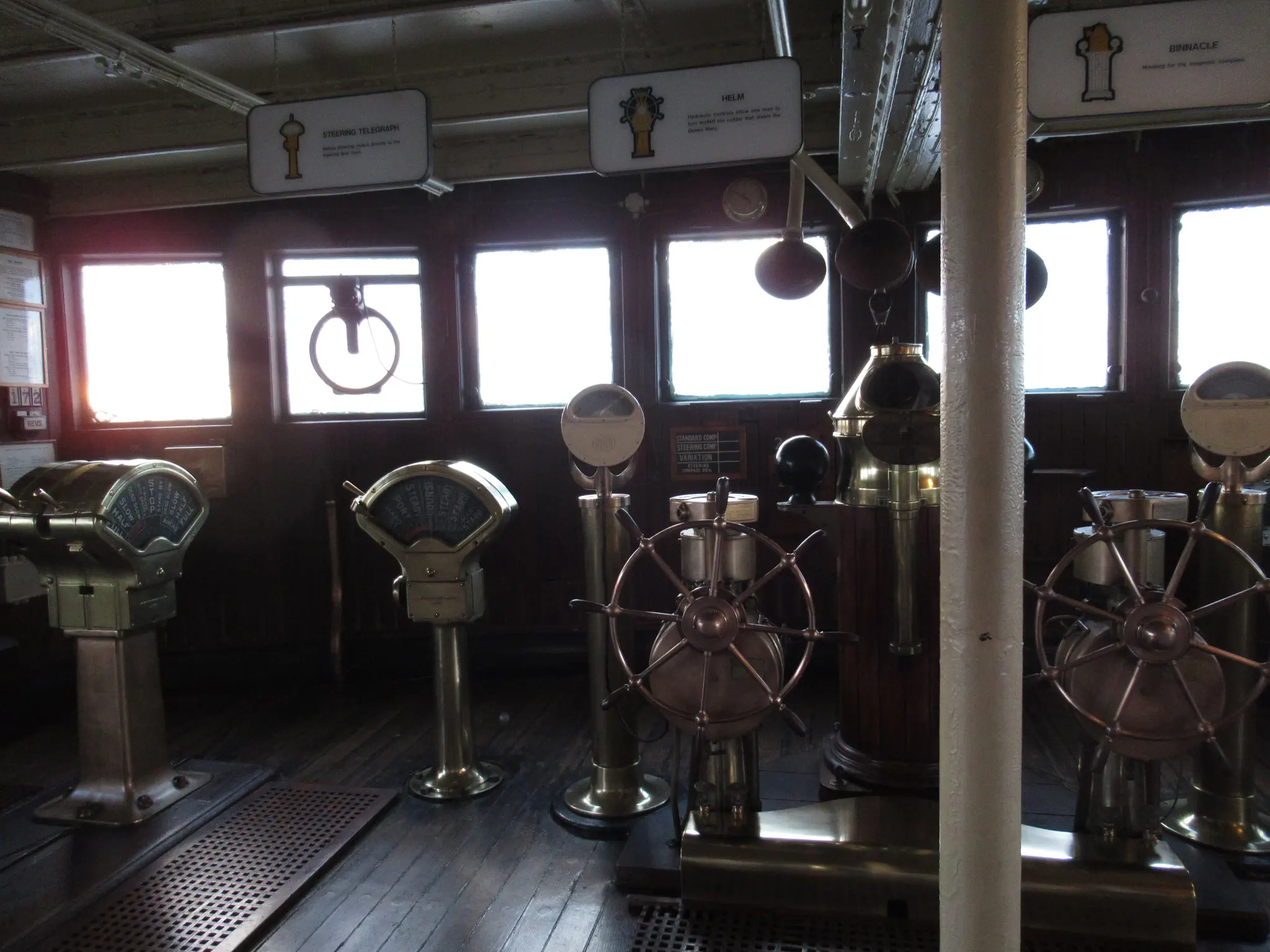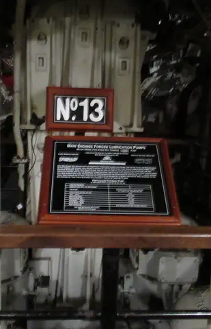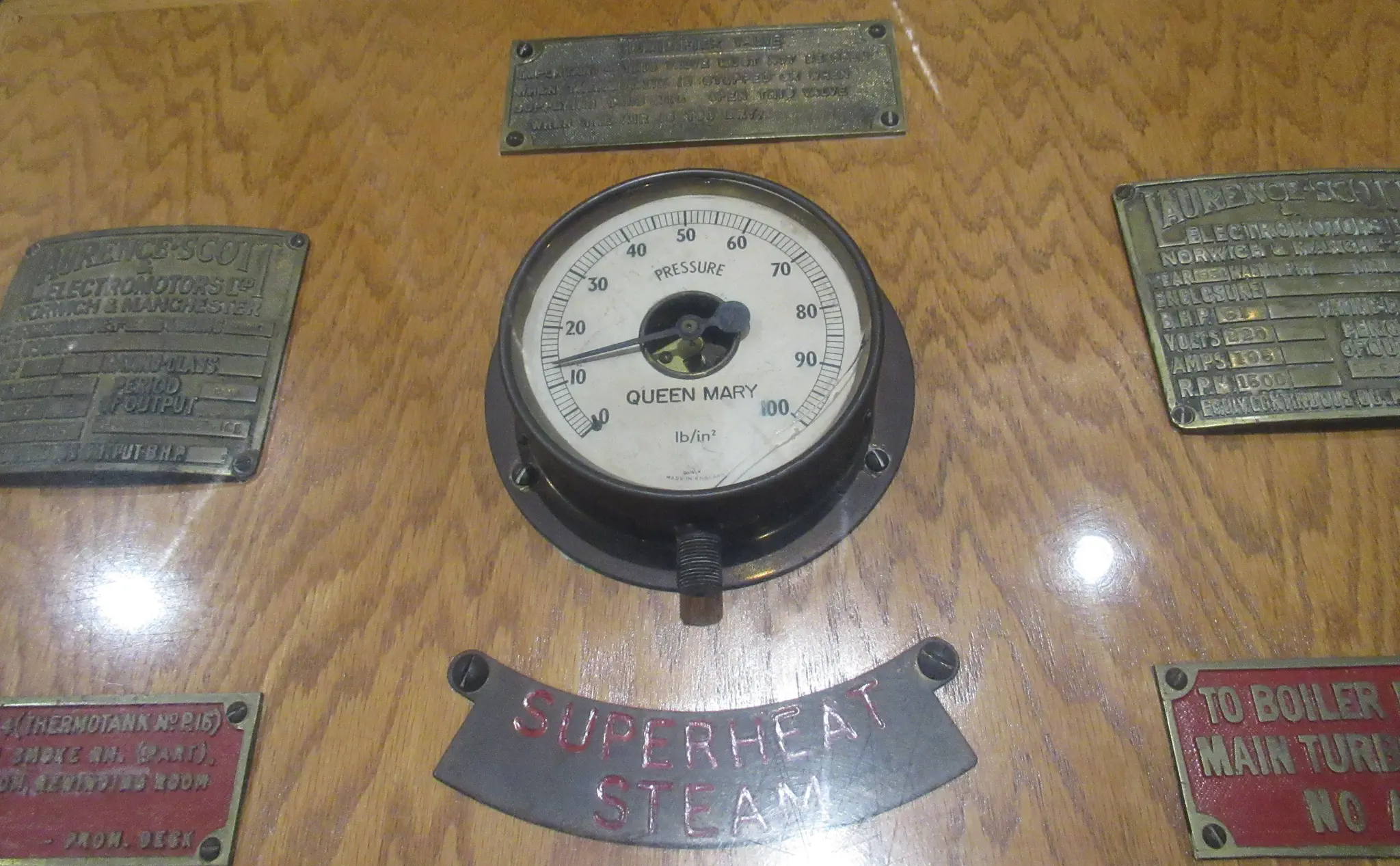 We first went to the engine room. It was massive -- over multiple rooms and decks. It is a steam engine; today, cruise ships commonly use diesel-electric propulsion. I have not toured a modern cruise engine room to know, but I imagine that this steam engine is larger. I did not get very good pictures because it was dark, but full, multiple parts of many engine rooms were on display.