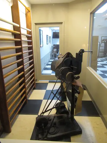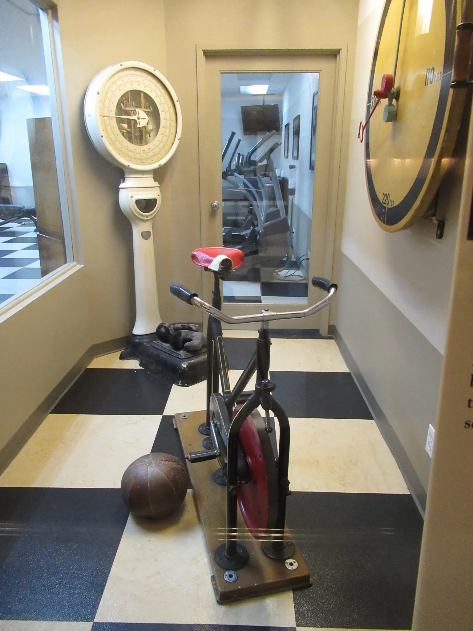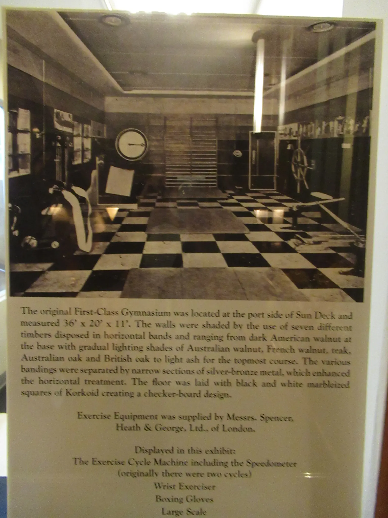 The current gym with displays of how the gym looked and some equipment from when Queen Mary launched in 1934.