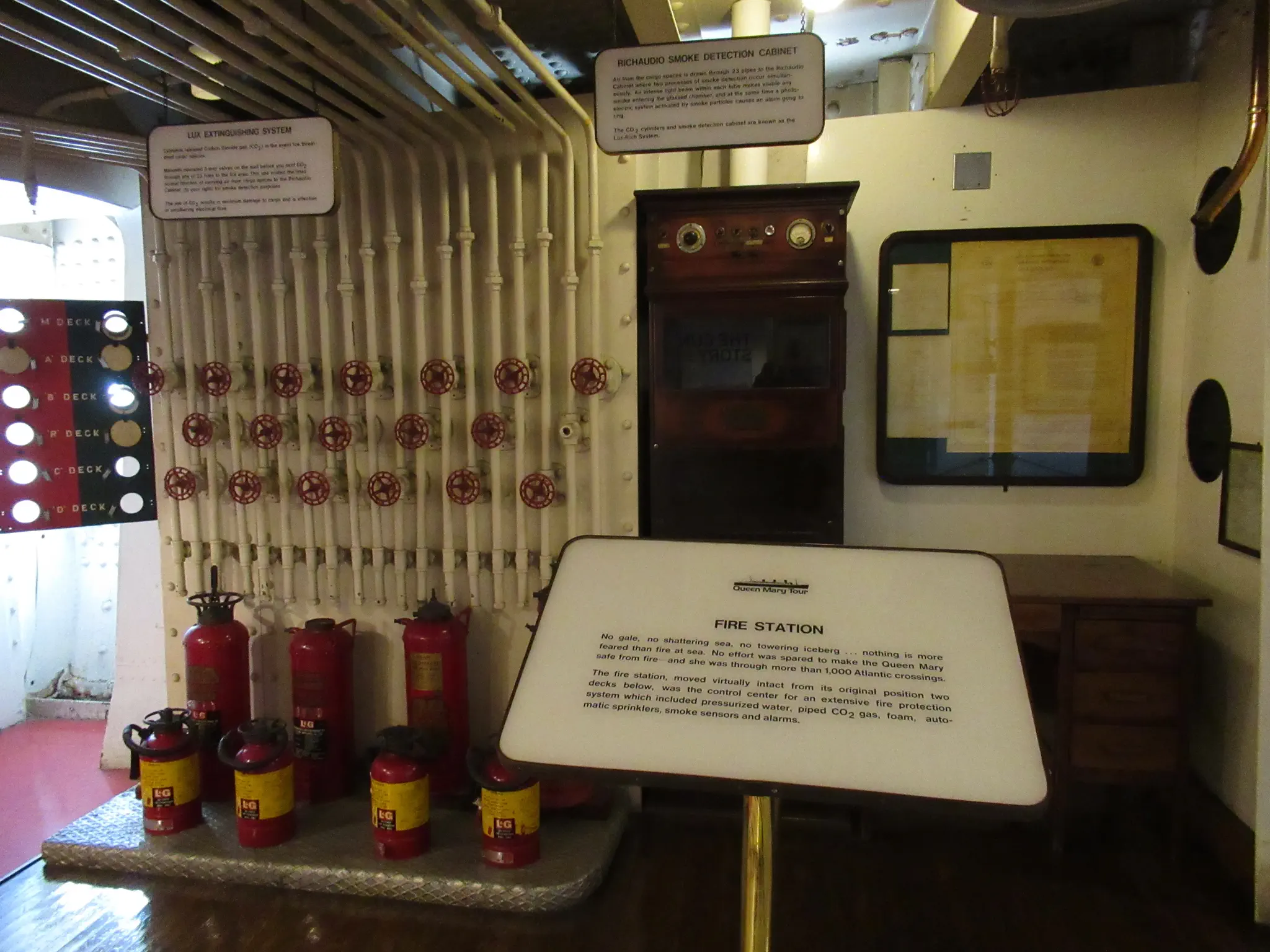 Lastly, fire safety. This was a very fancy system. The Lux system was used to extinguish fires piped to the different decks/rooms, and the Richaudio system drew air samples from different rooms across the ship regularly and ran two tests for the presence of smoke.
