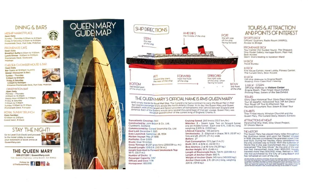 Now on to the museums to see what we can see today. If you want to read about the displays before coming, they have information here. The City of Long Beach did a wonderful job of, not only restoring the Queen Mary for hotel stays, but also a wonderful job with the displays. They also offer tours and even a ghost tour. Here is the map that they gave us at check in.