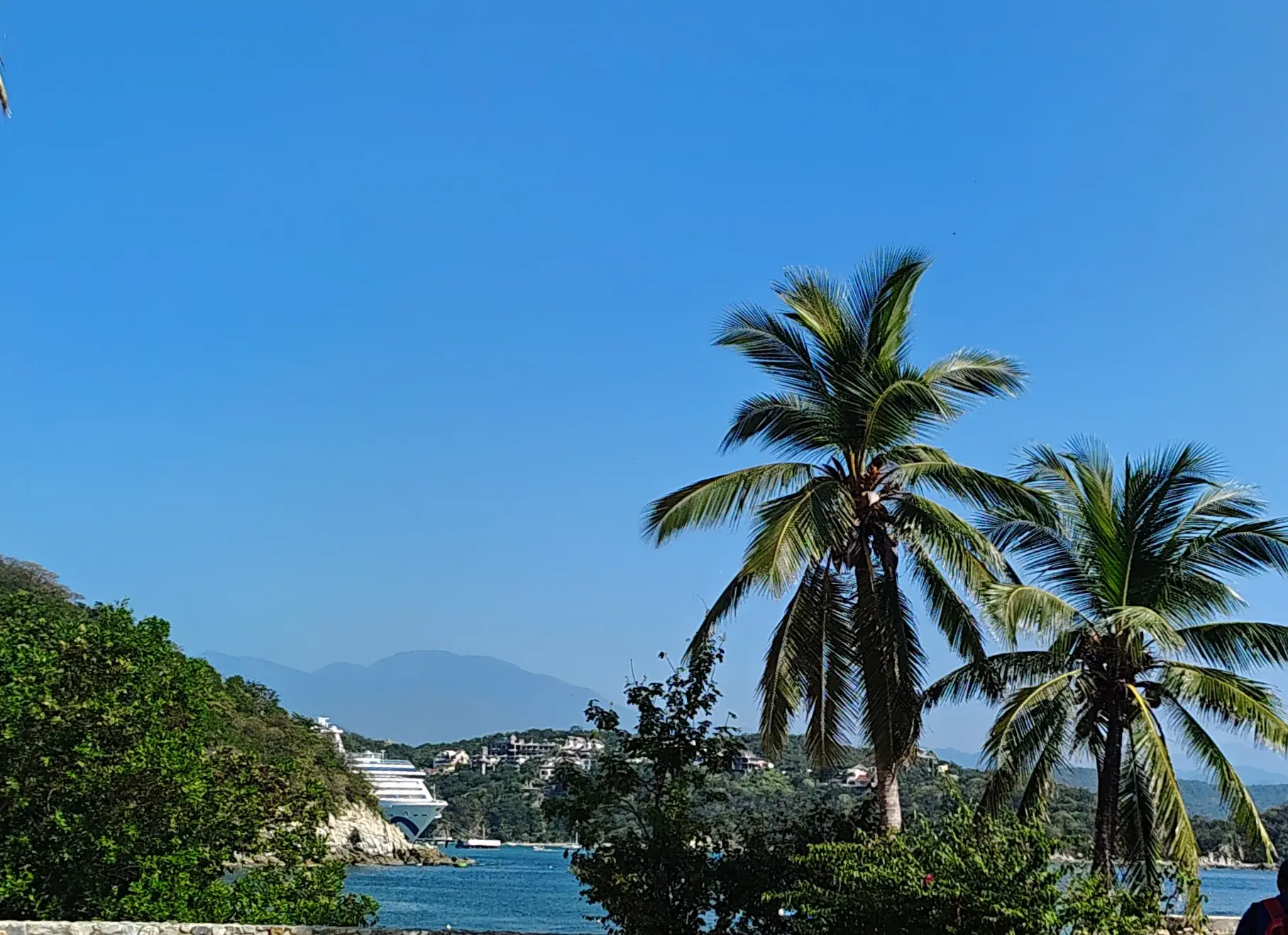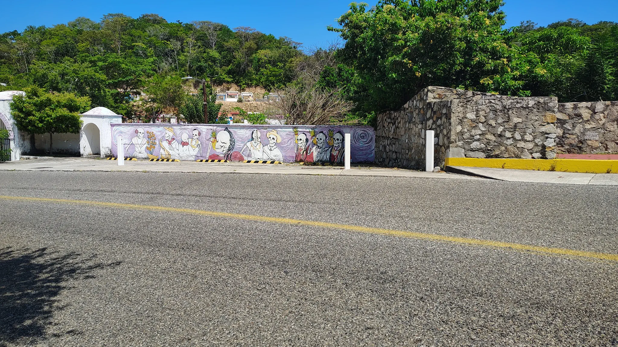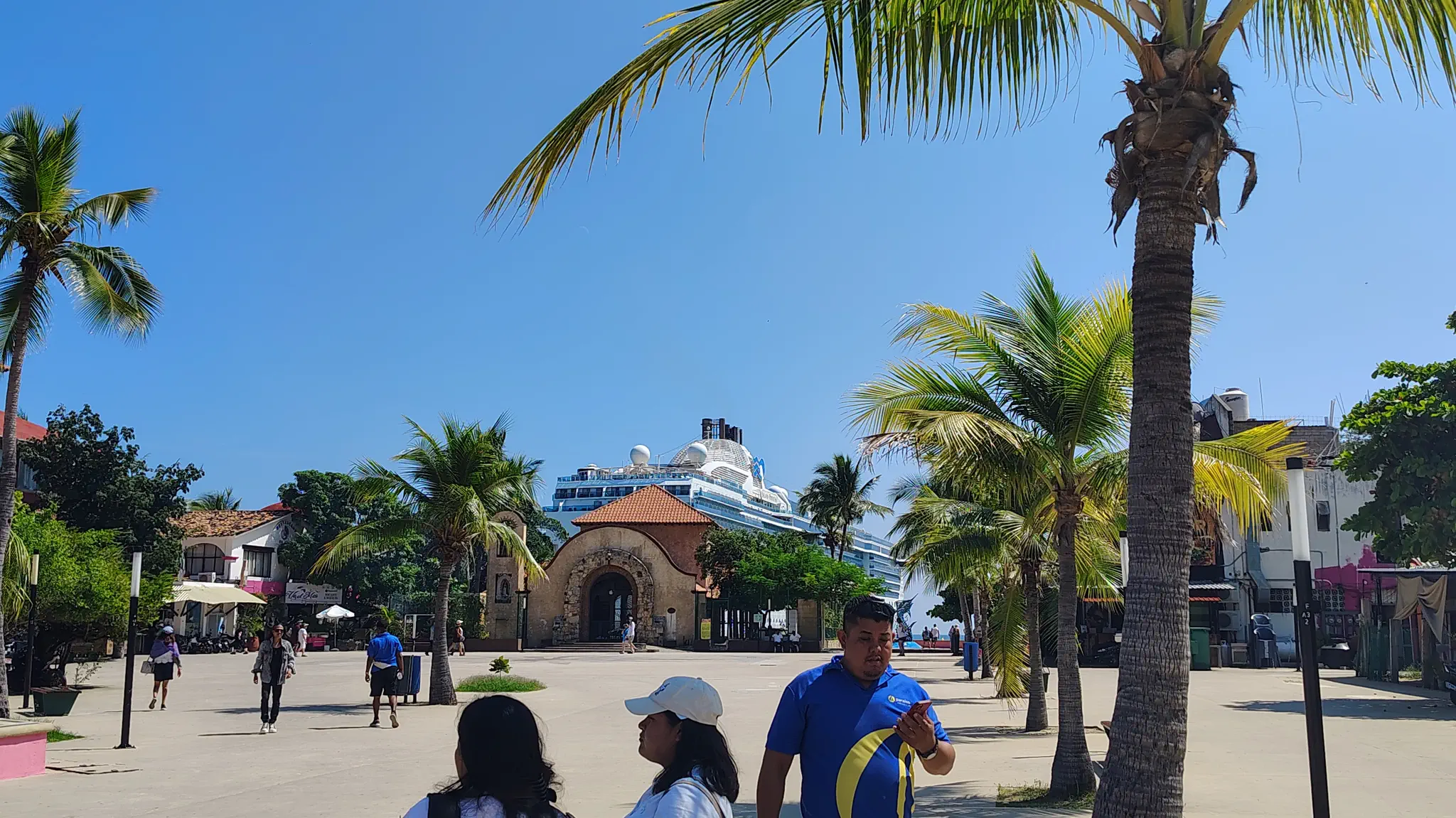 We planned to walk back and had scoped out the sidewalk options on the taxi ride there. The taxis heading back to the port were eager for us to hop in. One stopped three times, and I was starting to feel that we were being overly harassed. But, we kept walking. We got to see plants closer up and saw a coati run across the road -- cool! Travis was the designated photographer since we only brought his phone for my waterproof pouch since he had the eSim. A good view of the ship in the pretty bay. A cemetery with art.