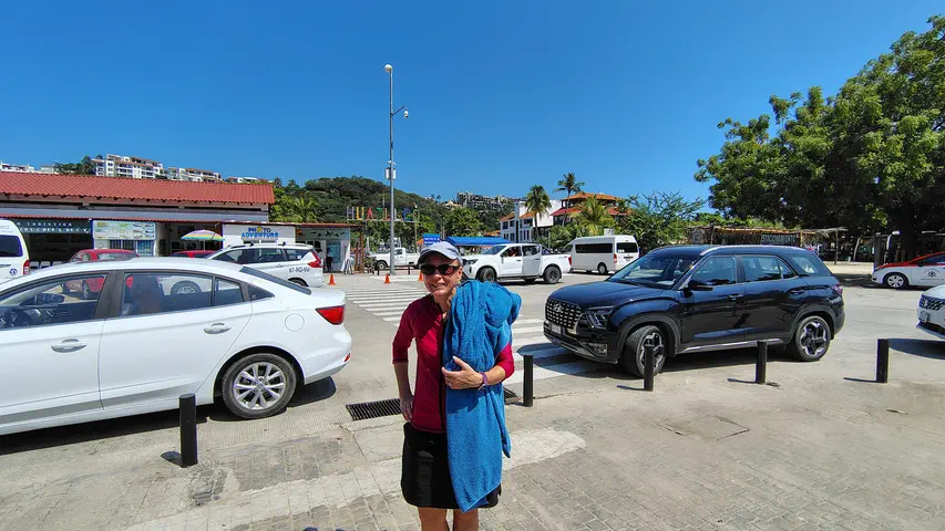 We planned snorkeling and read that Playa La Entrega had good snorkeling with availability snorkeling equipment for rent for about $8 / 150 Pesos each. We have snorkel gear but could not spare the luggage space so just planned to rent. We first walked out of the port to the close taxi stand. The taxi was around $7 USD for two people; agree on price before hopping in. There are no Ubers or Didis (a Mexican Uber version that was available in Mexico City) available in this city.
