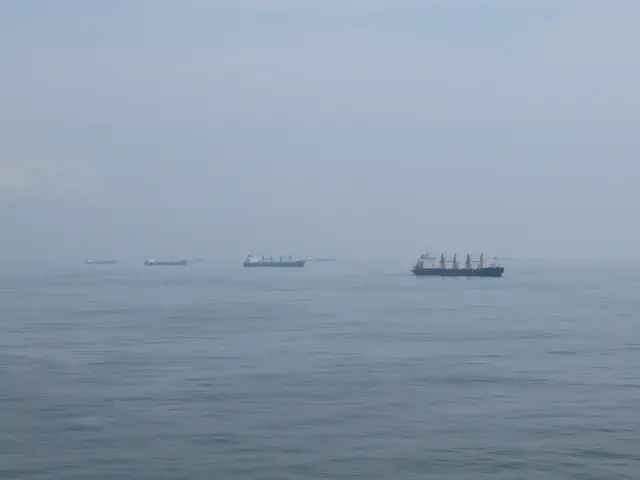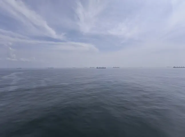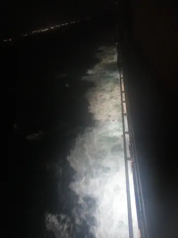The ship used lights shined on the ocean. I do not think other ships normally do that. It made a cool picture and view from balcony.