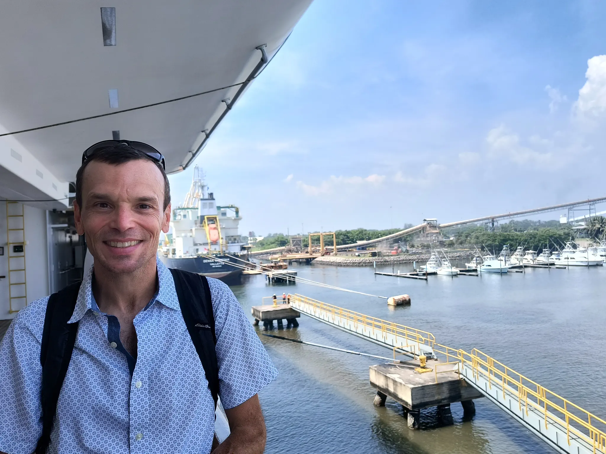 Before going ashore, Travis was trying to tell where we could walk since there were container ship areas on several sides. There was not too much. On land, there were many vendors, including a band performing and cocoa demonstration in the port area. There were a few bars and restaurants too.