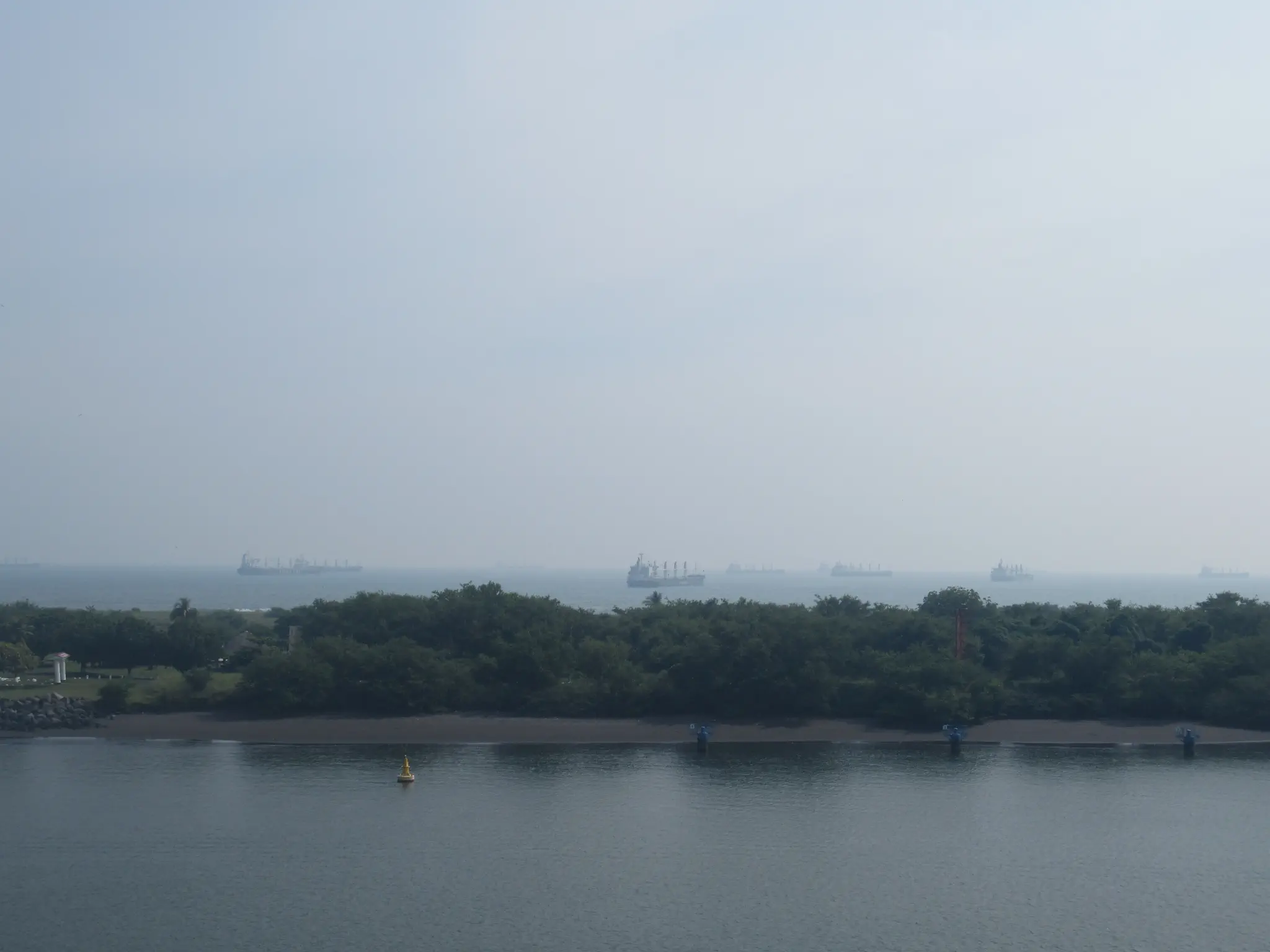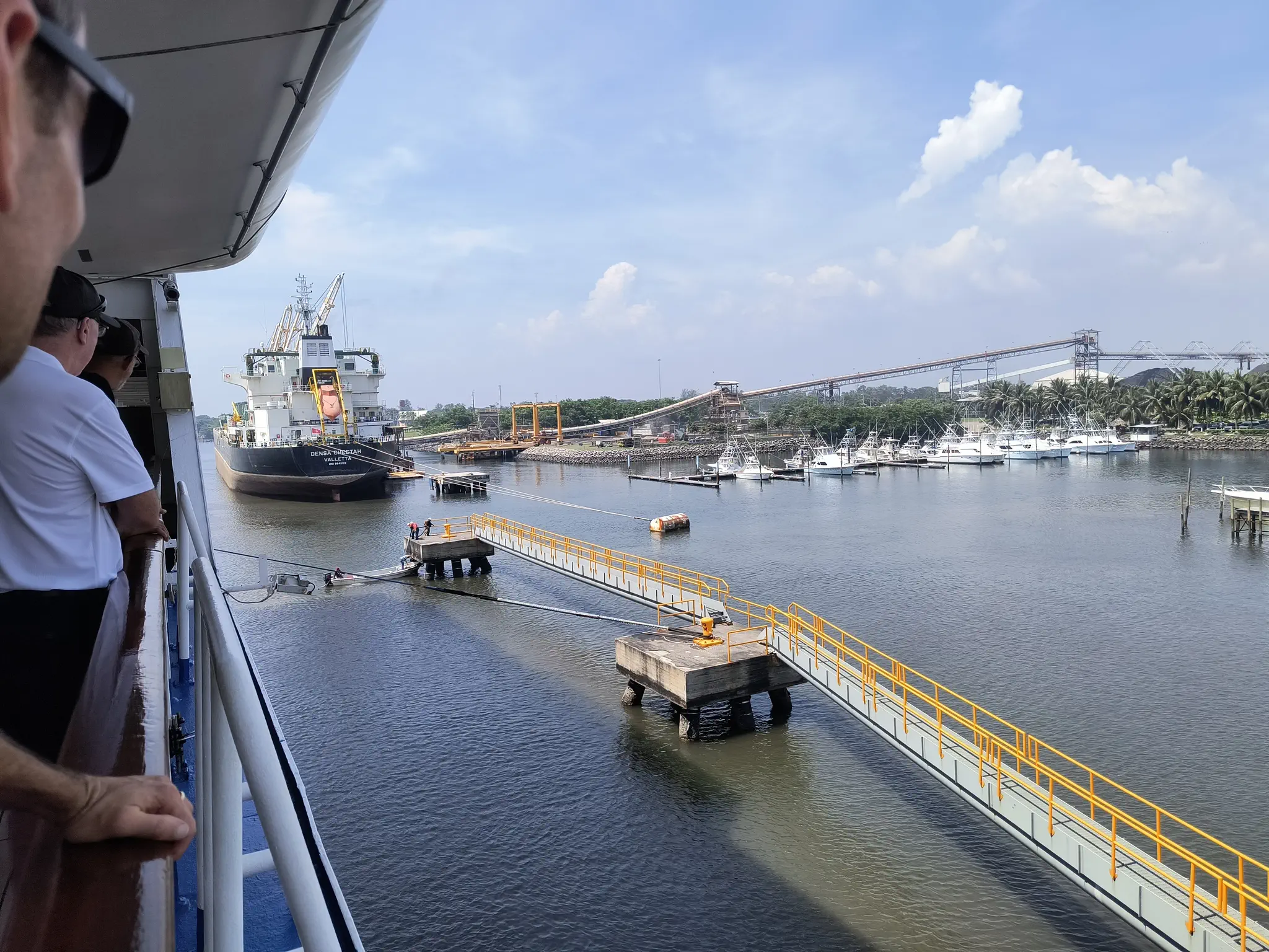 Scoping out Guatemala from the ship while they were docking the ship. They tried the mooring line gun at first, but it was not getting anywhere near that the guys on the pier that they were not even trying to catch it. So, they brought out this boat to drive the mooring lines to the pier instead.