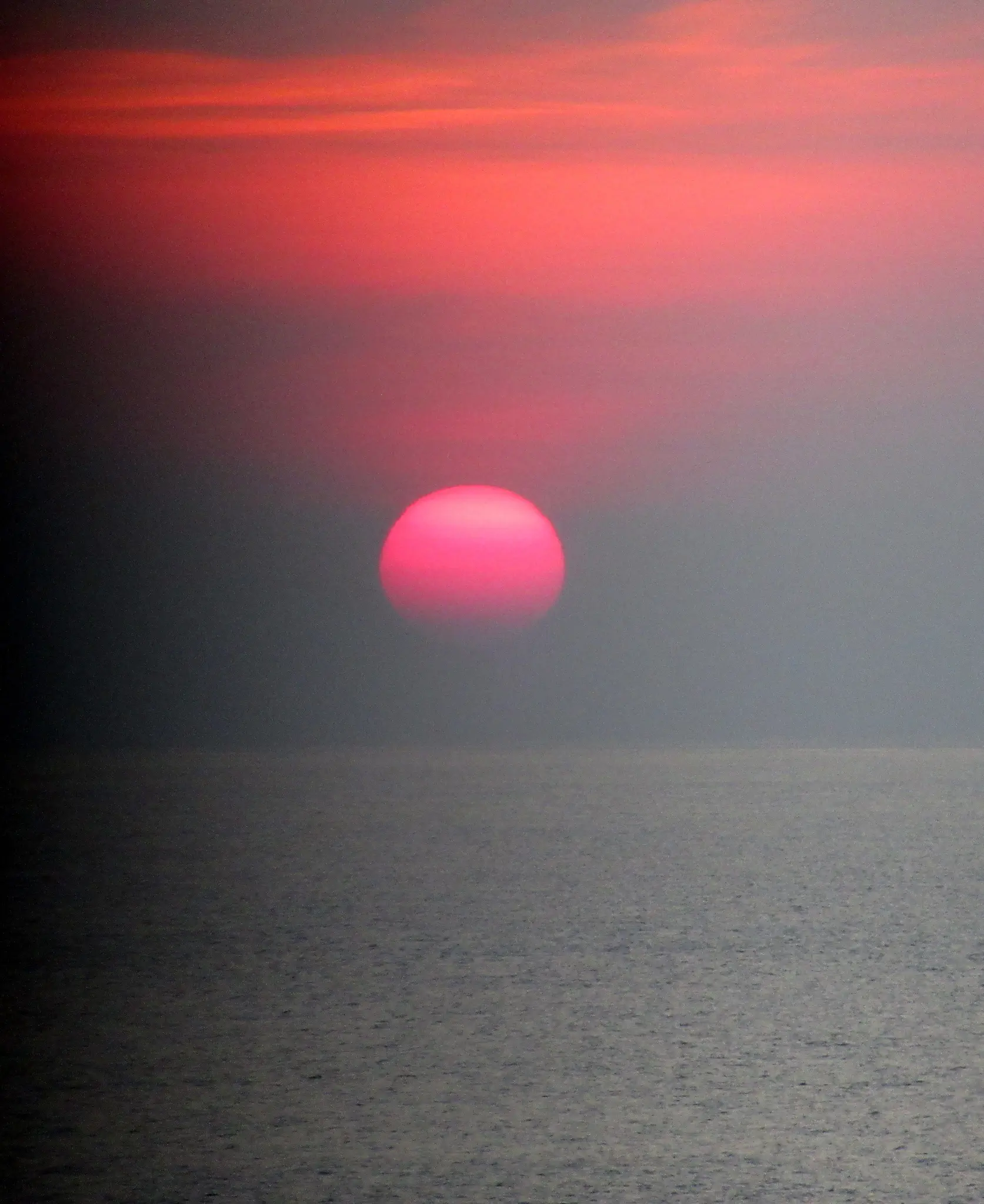 I peeked out the balcony curtains when I woke up, and I caught this sunrise. The picture never does it justice, but including it anyway.