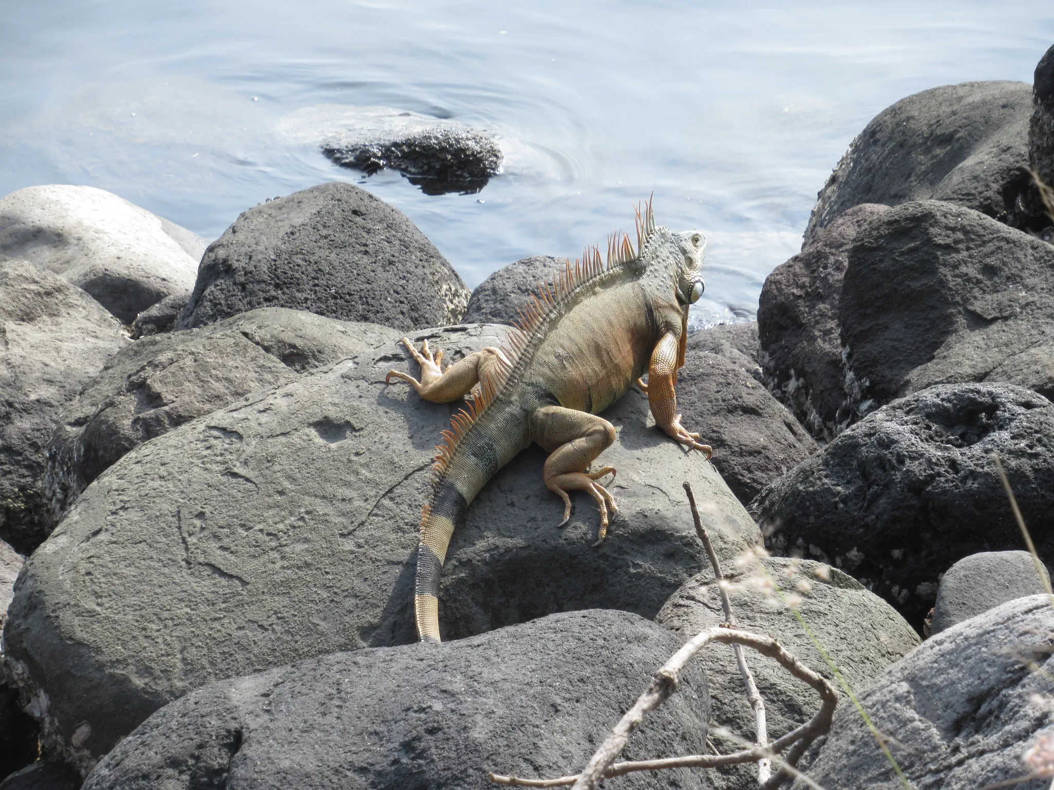 We found some iguanas and got some good pictures. They were very cool looking. We did not see too much more being a container port. We saw one ship picking up and dropping big piles of dirt. There was a long conveyer belt going from the ship area to a building far away.