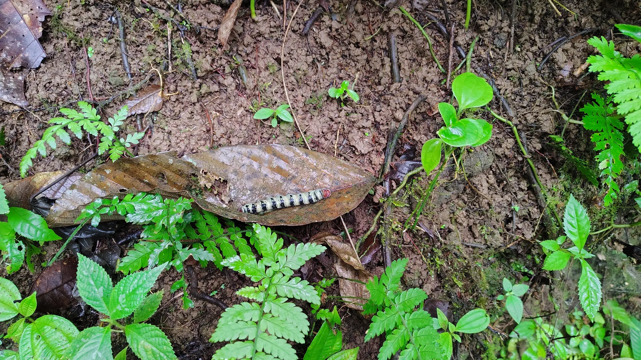 Our guide pointed the mushroom. Then someone found a big caterpillar. It was on the trail and did not seem to be doing very well. Our guide moved it up to the side of the trail, so it would not get stepped on.