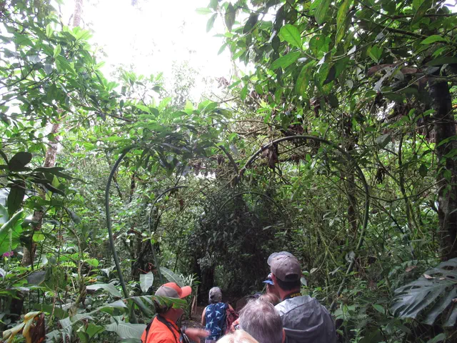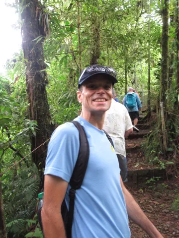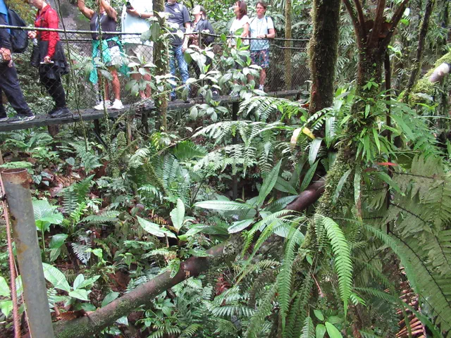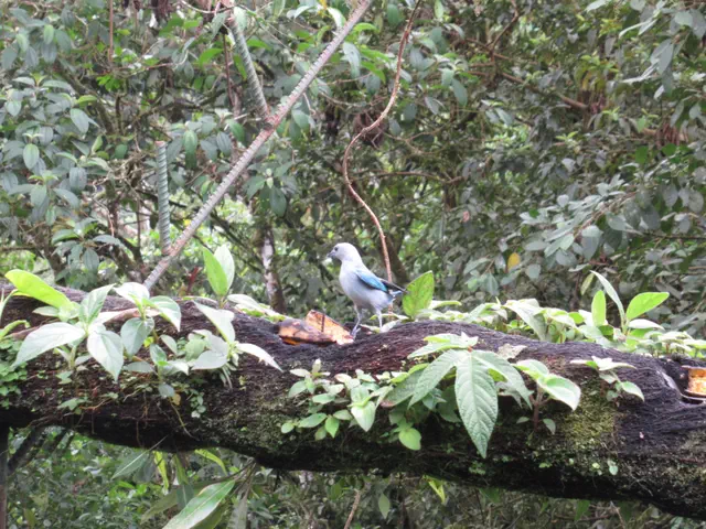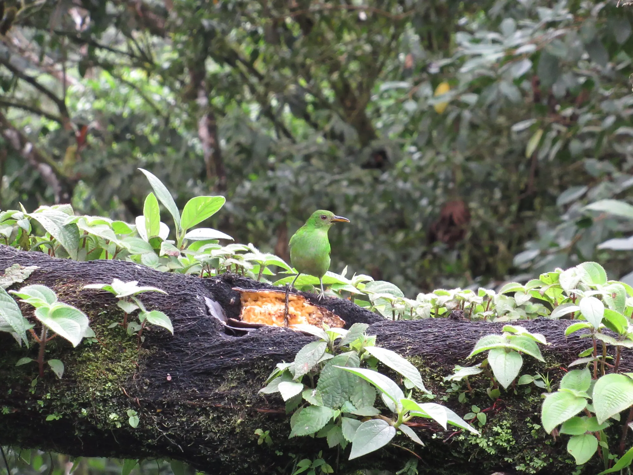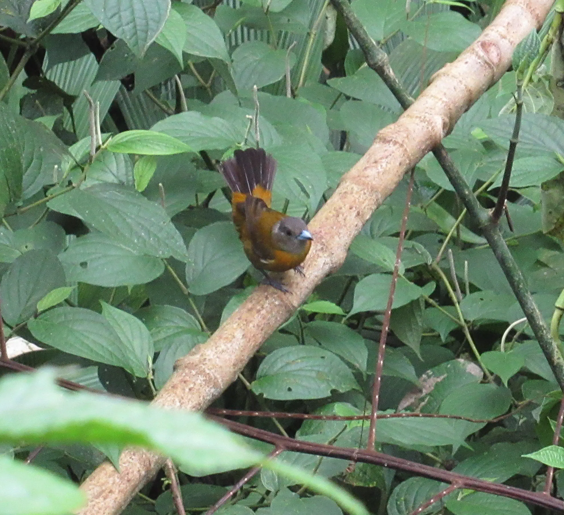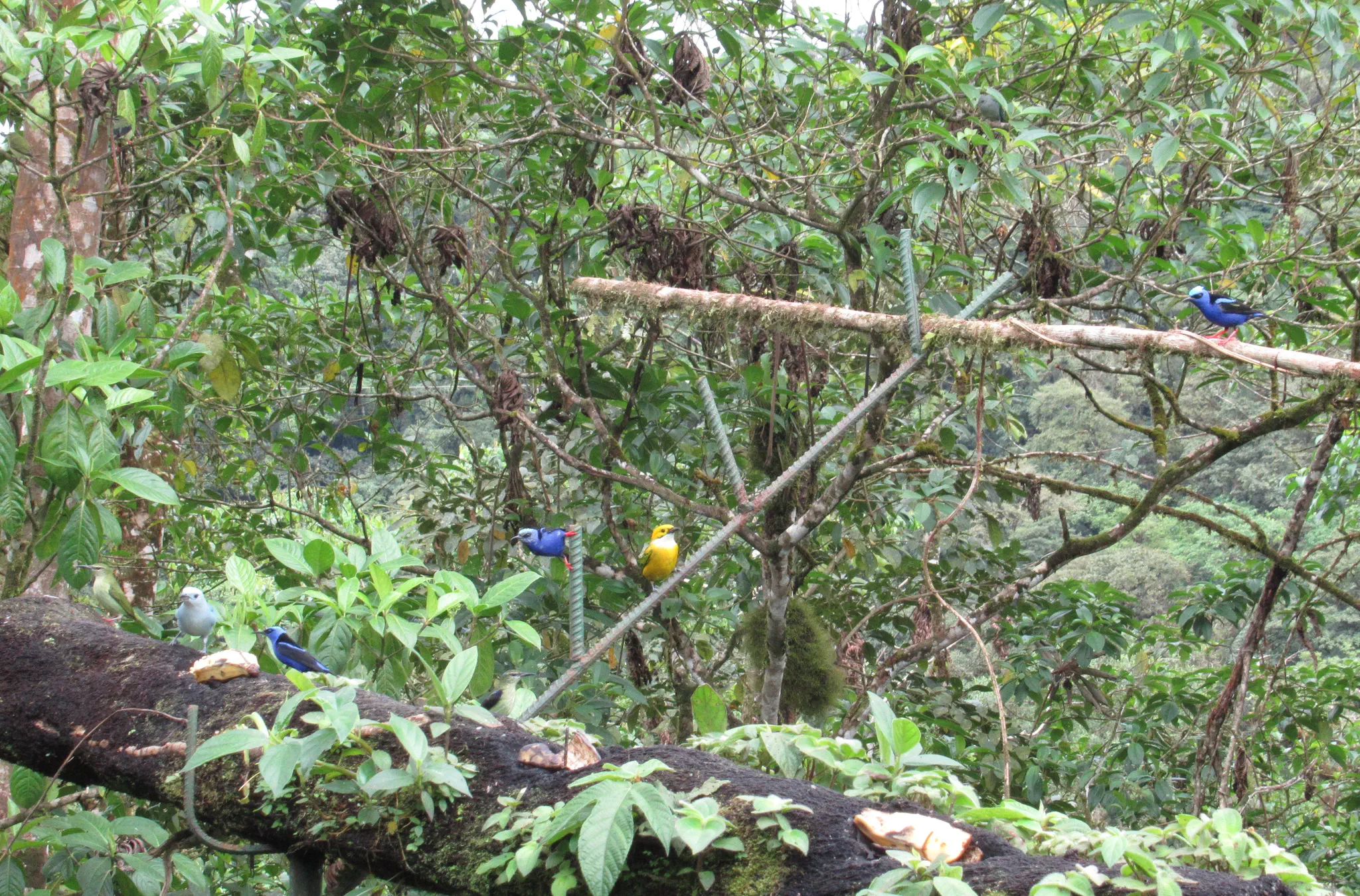 We left for the rainforest hike with the hanging bridges from the buildings with the restaurant, restrooms, gift shop, and food shop. They had an area in back where they put out food to attract birds. I don't have a picture, but we found the Costa Rica national bird. Of all the pretty birds, they picked a brown bird for the national bird. It does have a pretty singing voice though we heard. Our tour guide showed us/told us about local birds and animals from a DK travel book on drive.