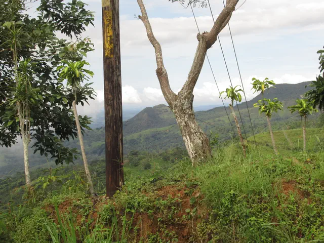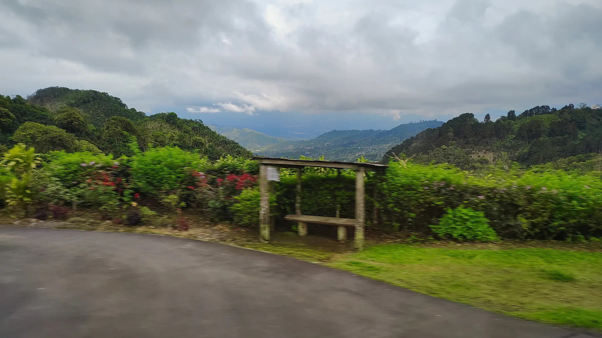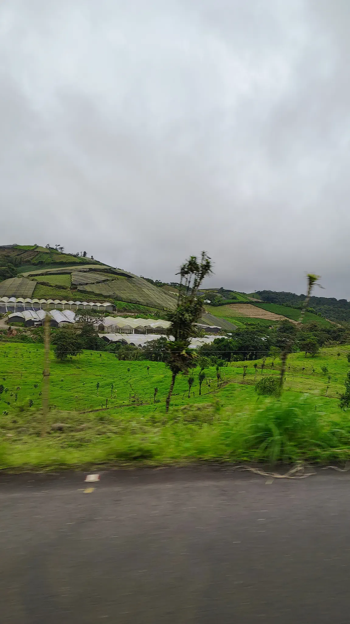 Back in the van, we headed back. This is greenhouses for ornamental plants that Costa Rica grows and sells primarily to the Netherlands. Interesting electrical work; it looks like some that we saw in Valparaíso, Chile. Beautiful vistas with some rainforest clouds.