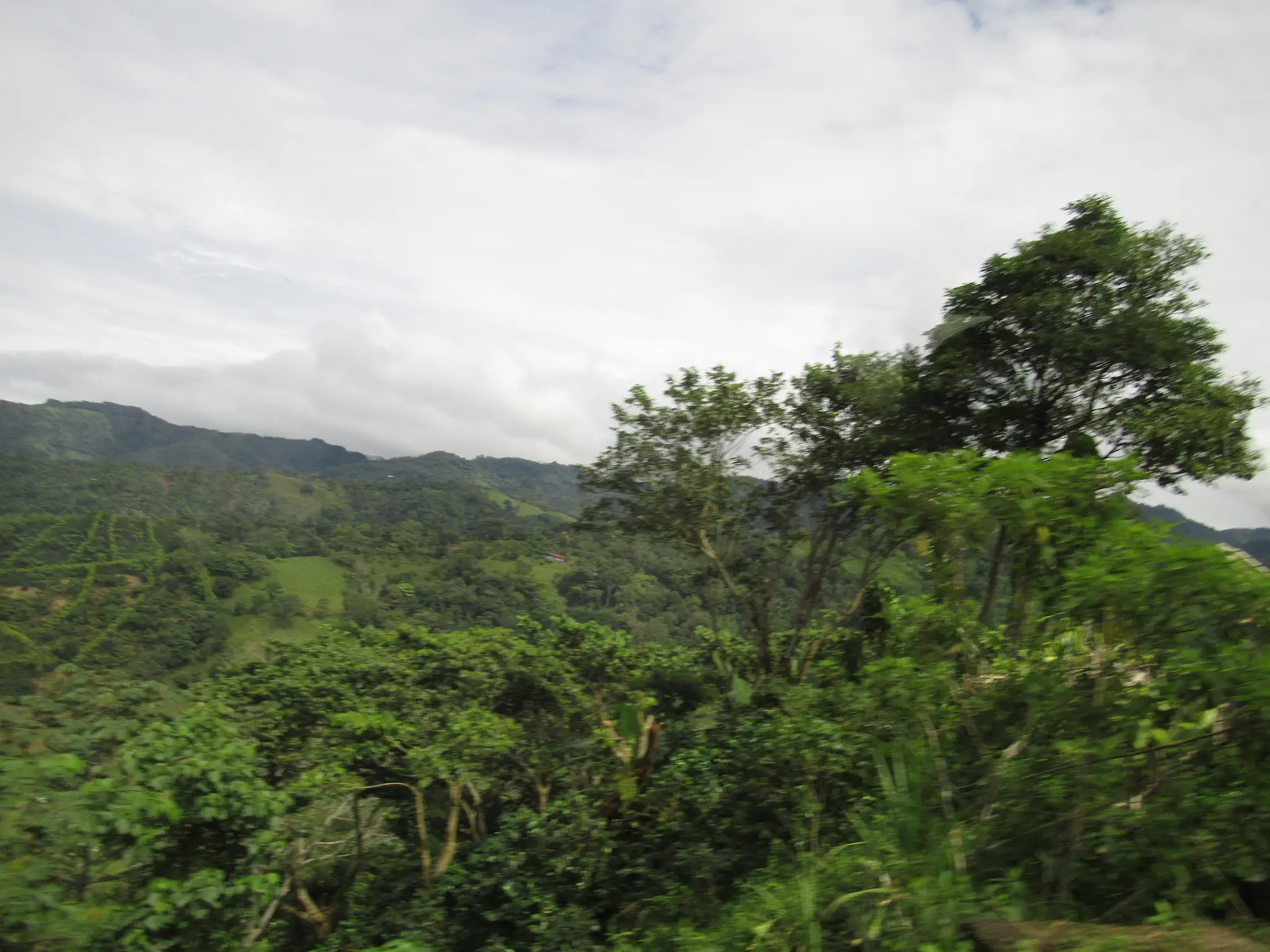 In Costa Rica, they claim to have the best coffee. They did sell it for $22 in the gift shop. Travis had some at lunch and said that it was good. Coffee plants at an angle back in the bottom right. Our guide had a rough time picking coffee, so he went to his Dad and said that he wanted to go back to high school, after all. He was very happy with his tour guide career.