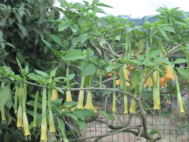 Grandmas told kids to stay away from this flower -- the Angel's Trumpet -- since it is poisonous and hallucinogenic. It is pretty though.