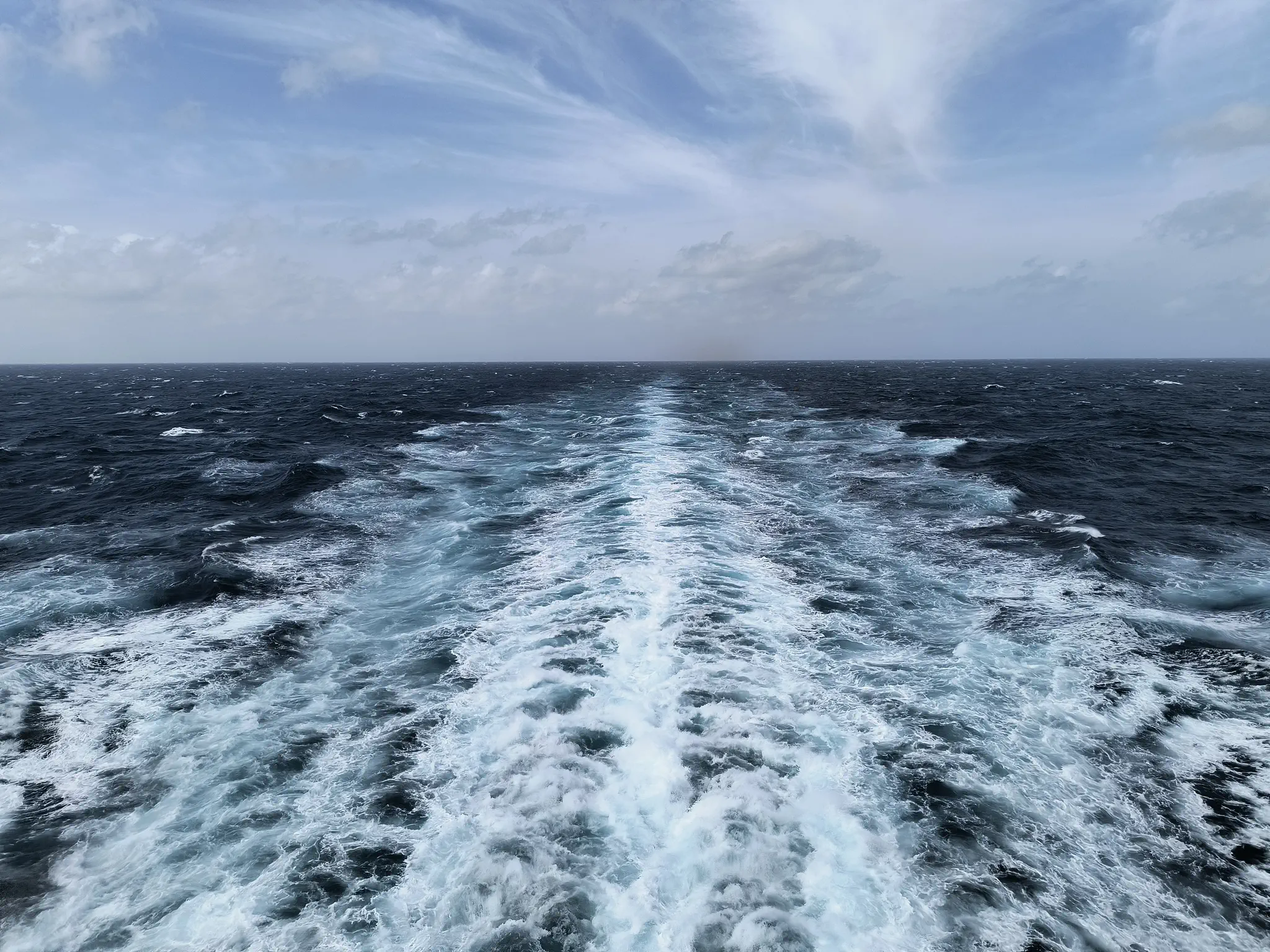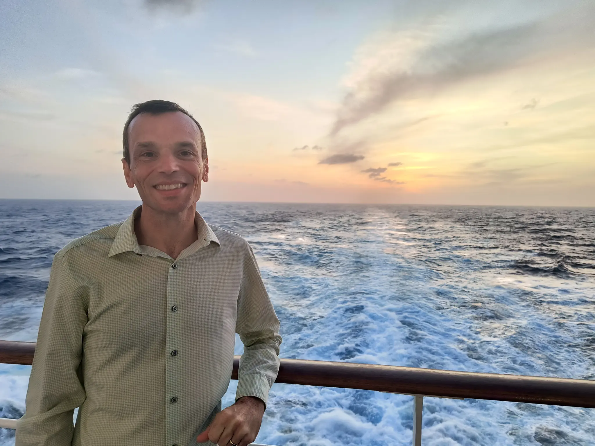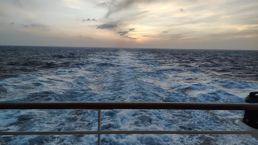 Enjoying the wake and sunset on a sea day.