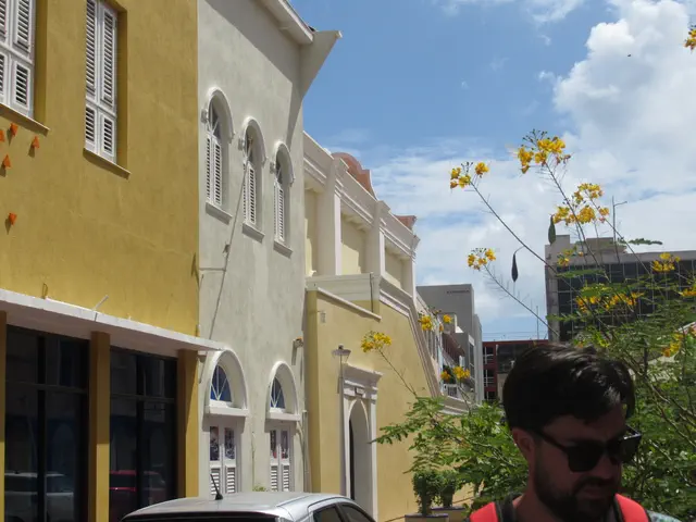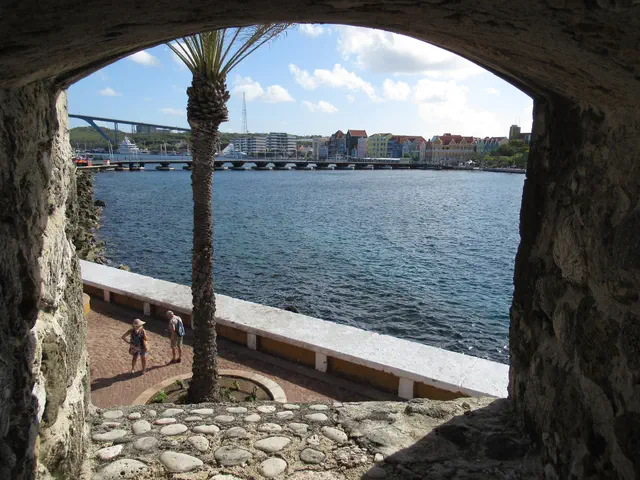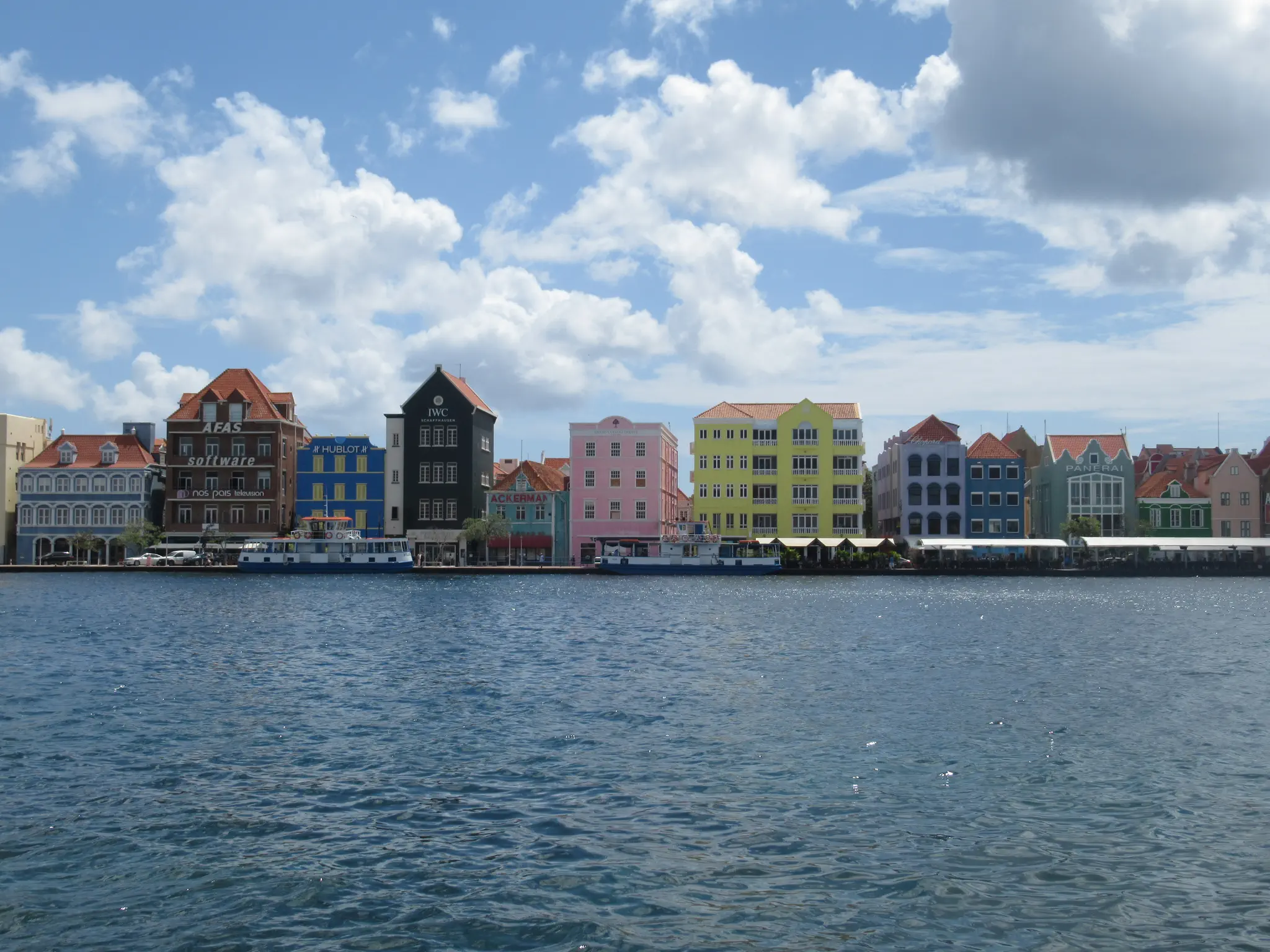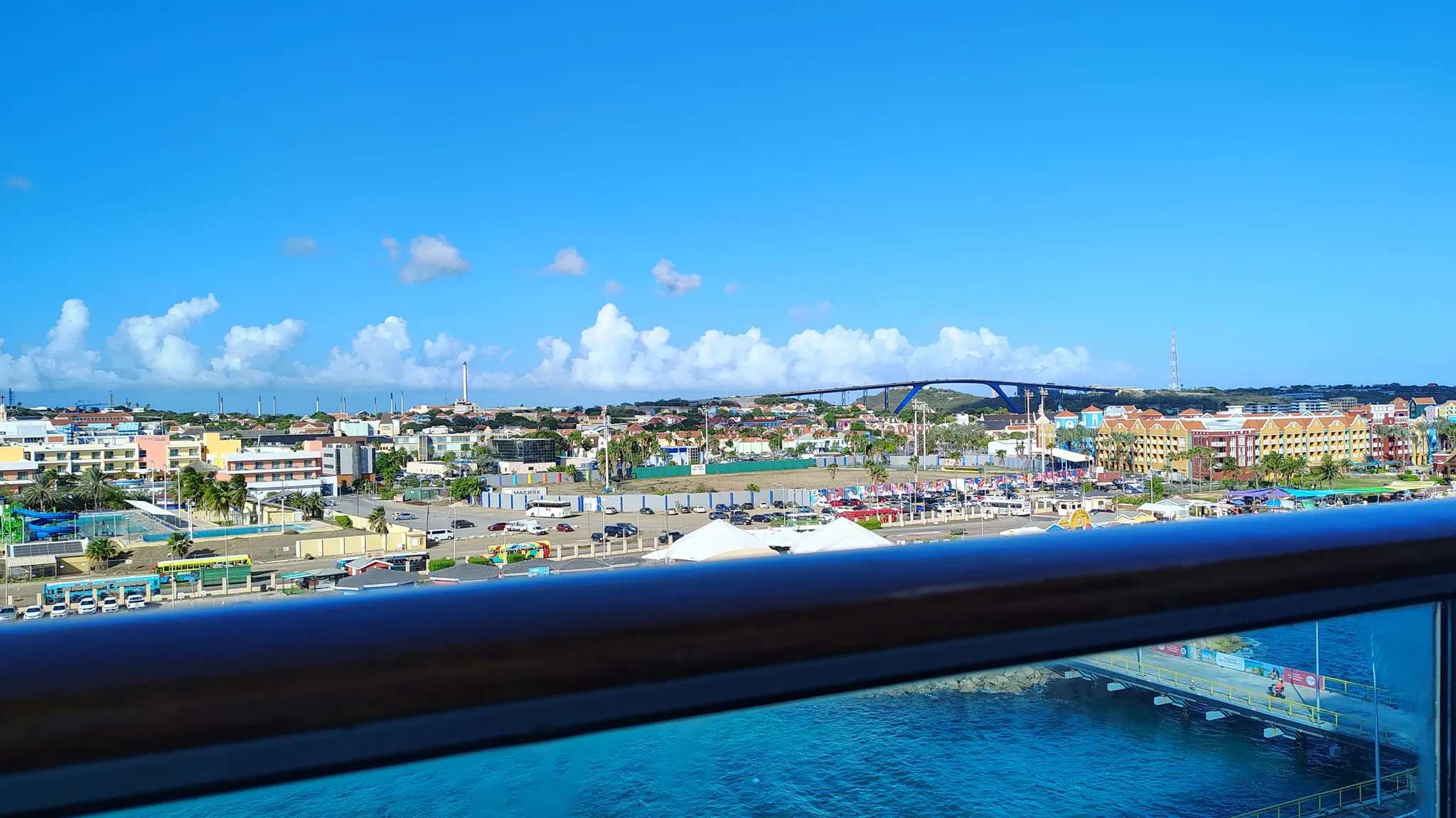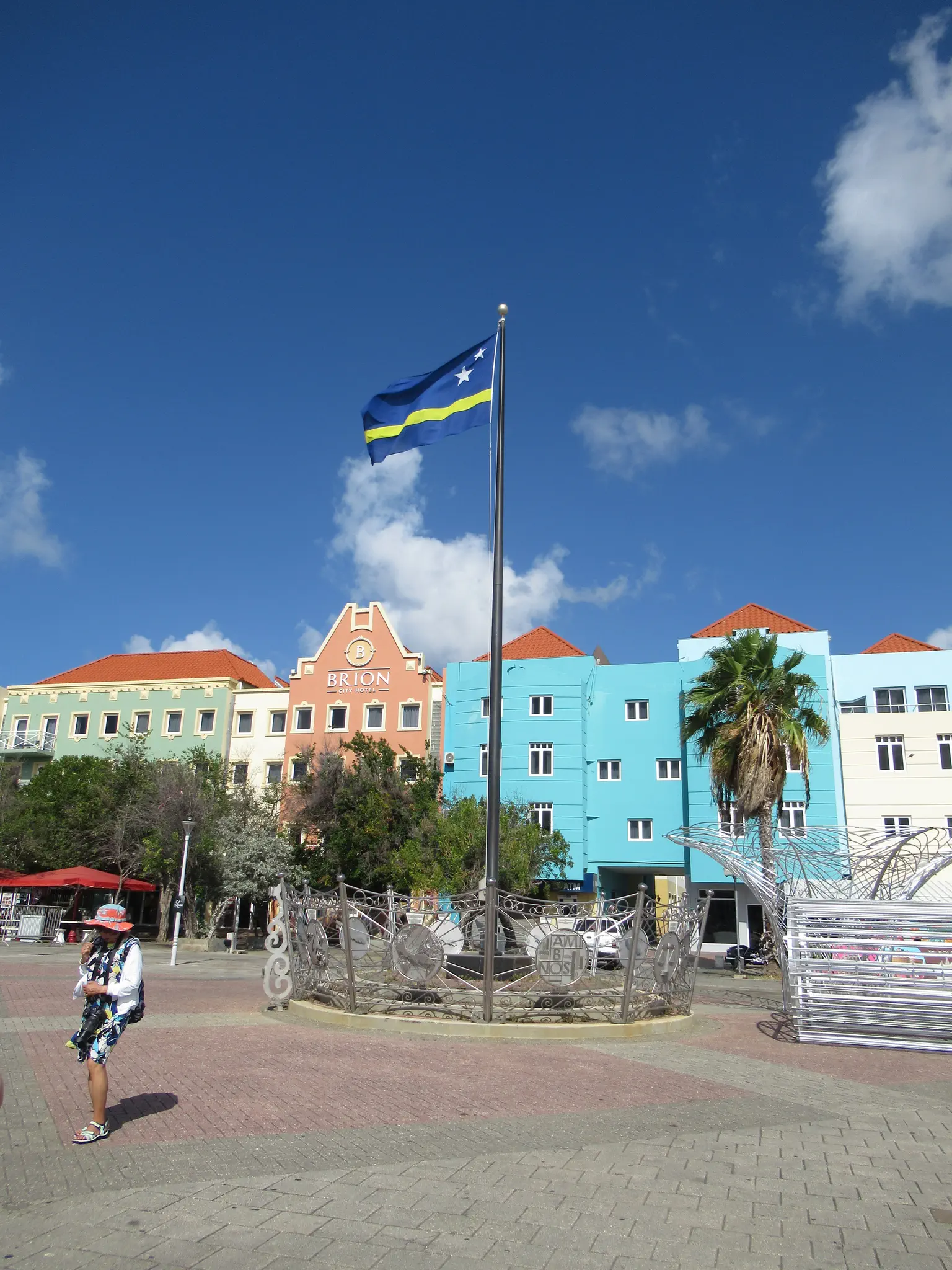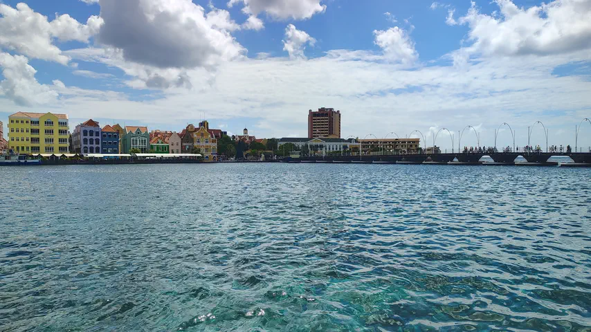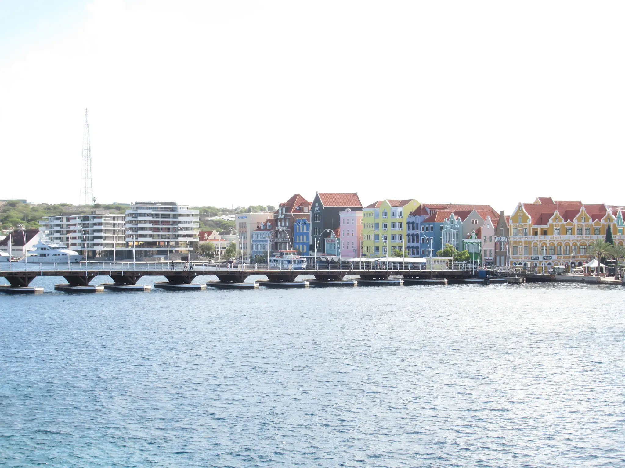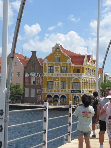 Views of the Dutch looking buildings and Queen Emma bridge with its platoons.