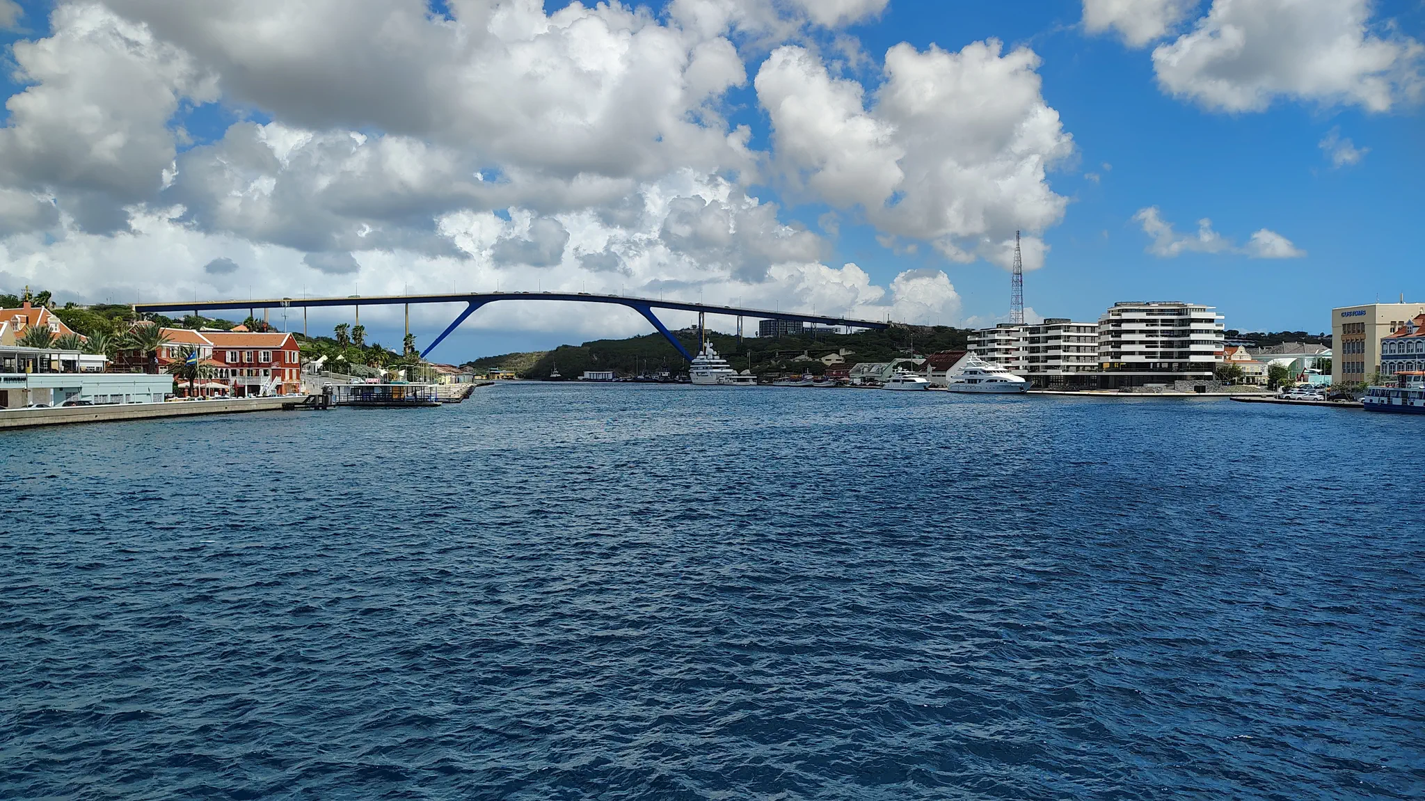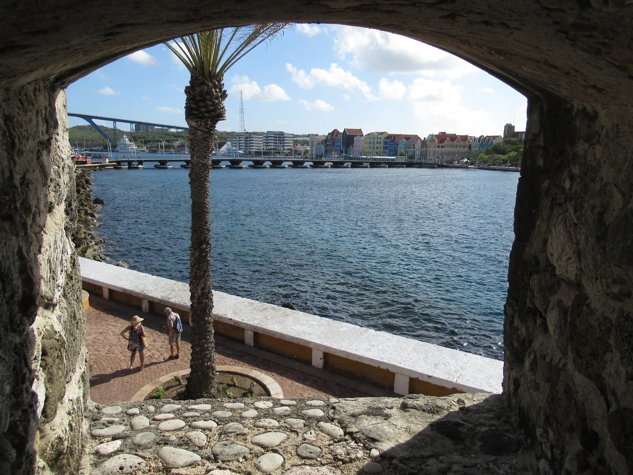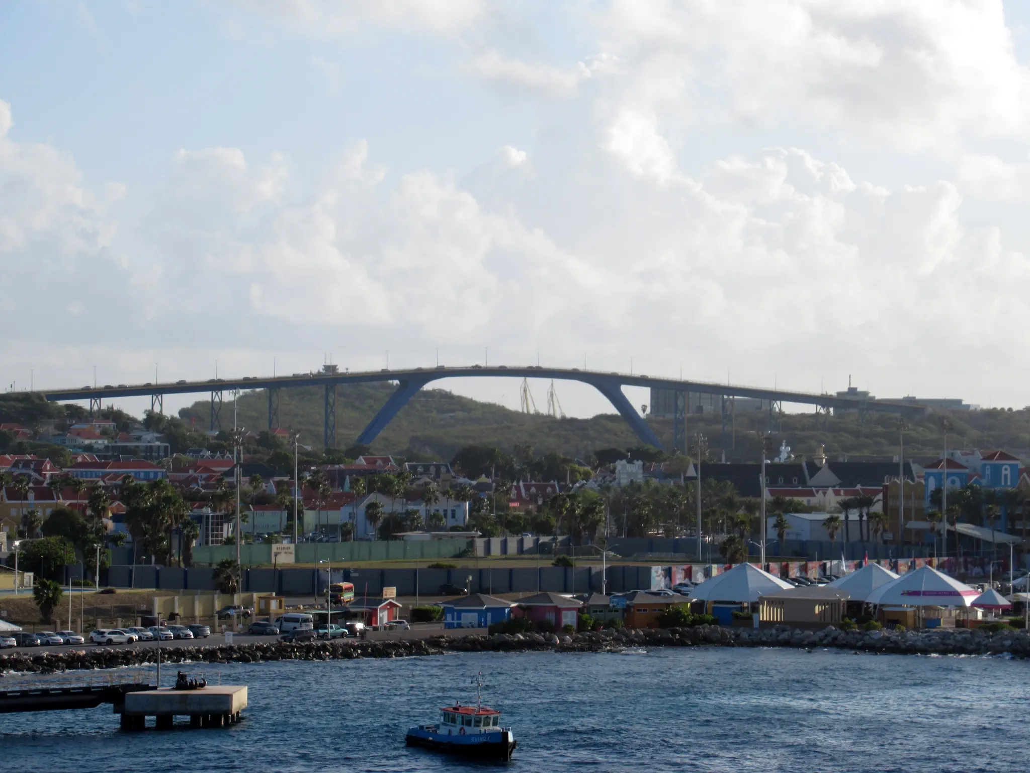 Queen Juliana Bridge for car traffic, as opposed to the Queen Emma Bridge, which on platoons, swings open, and is only for pedestrians.