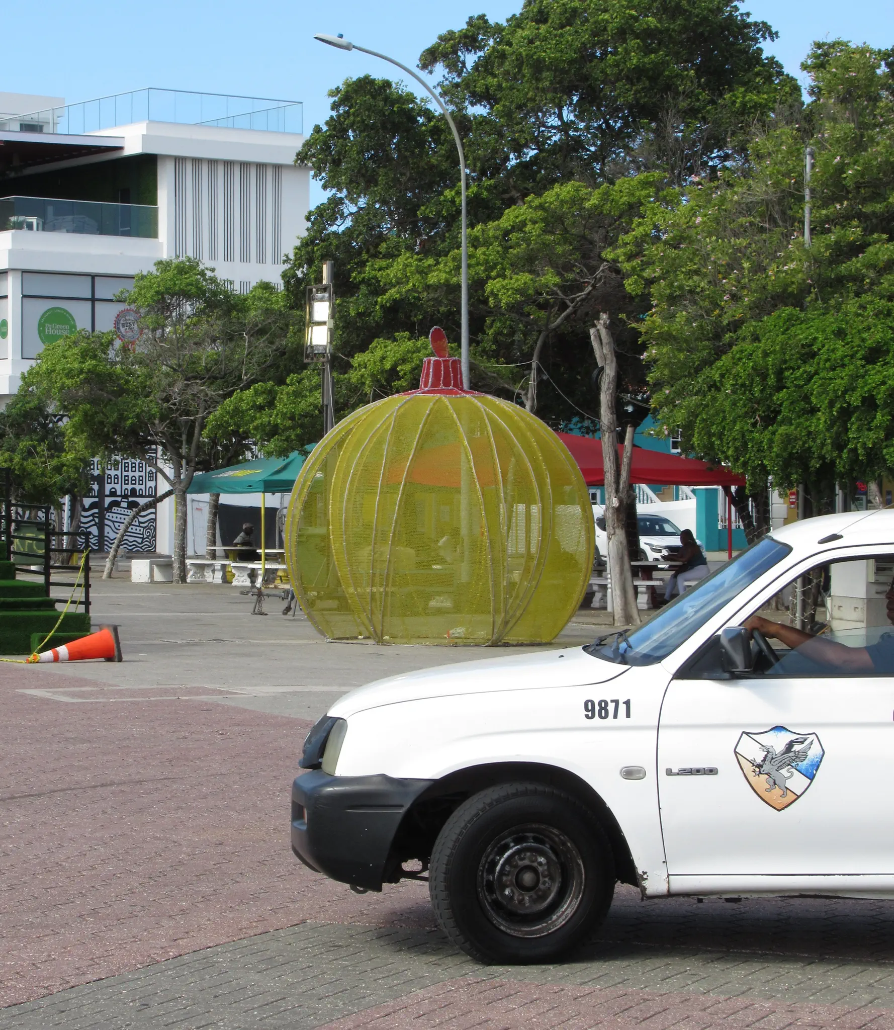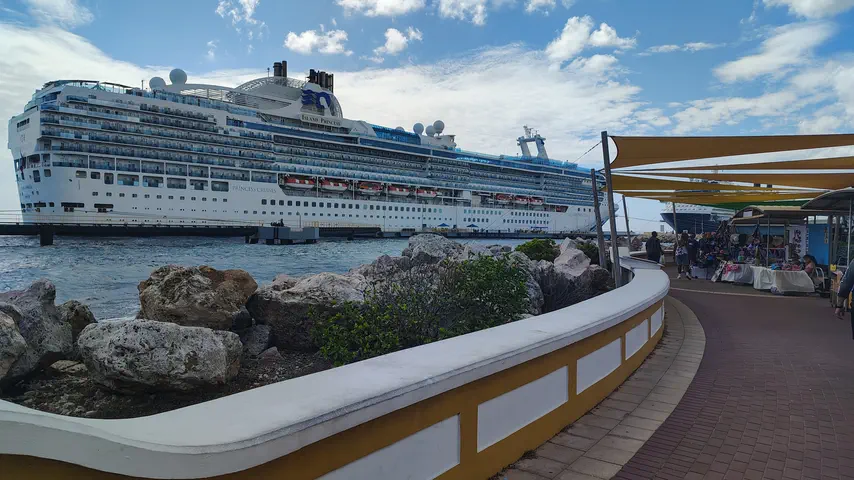 We stopped by a grocery store to get some local snacks and a soda. I found a Christmas ornament -- sea turtle that said Curacao. Then we walked back to the ship. I have taken other post box pictures, so here is Curacao's.
