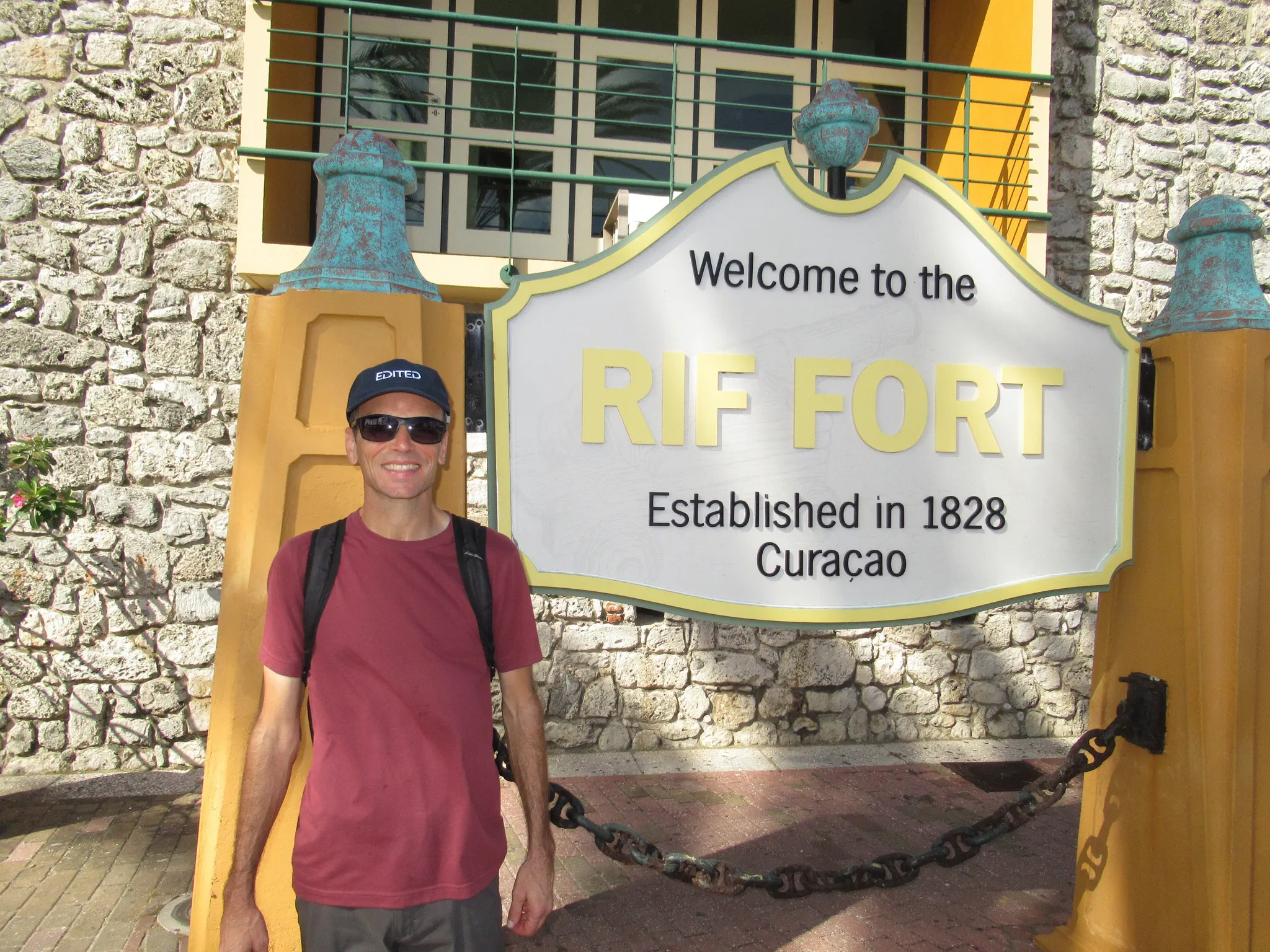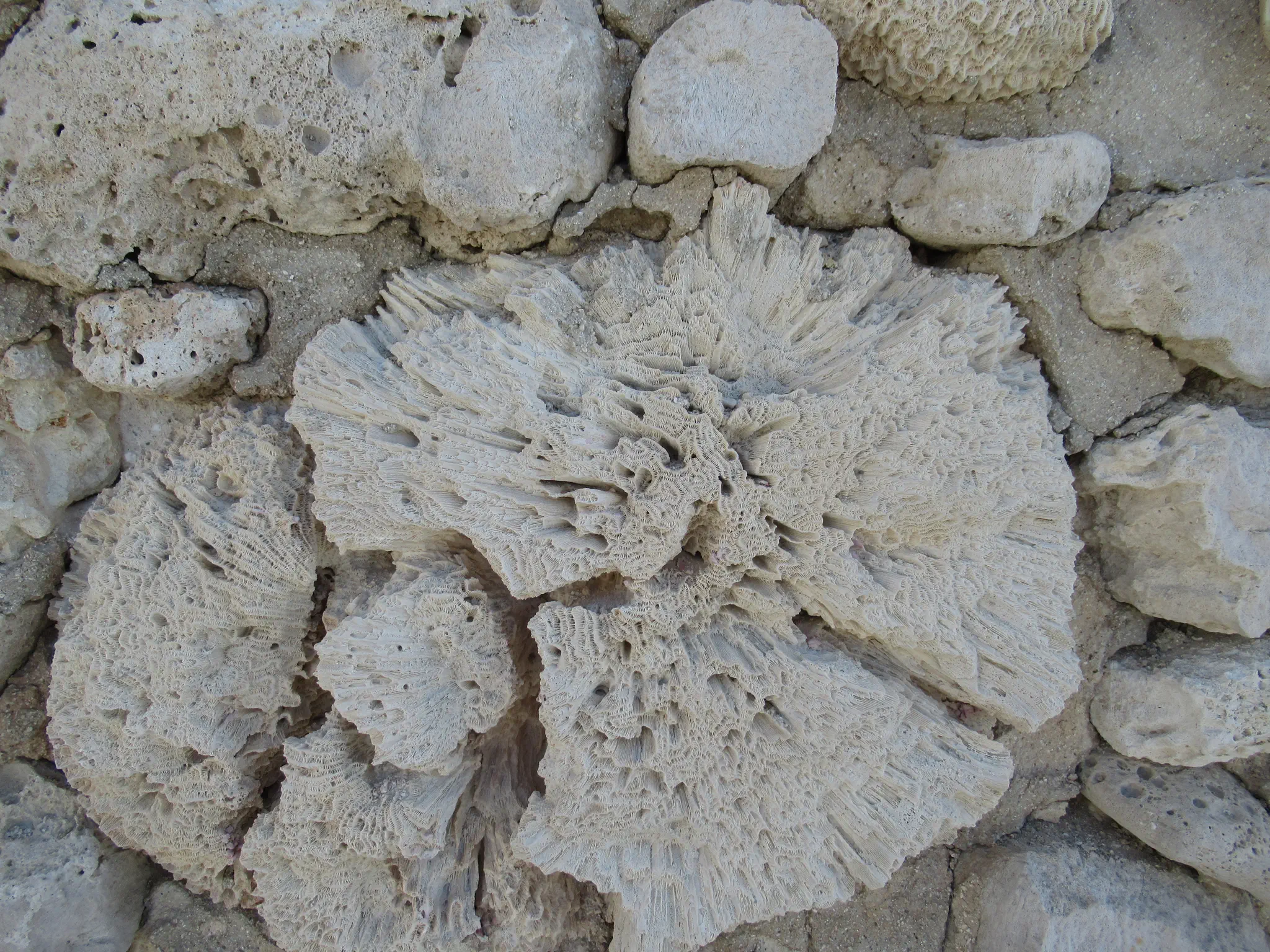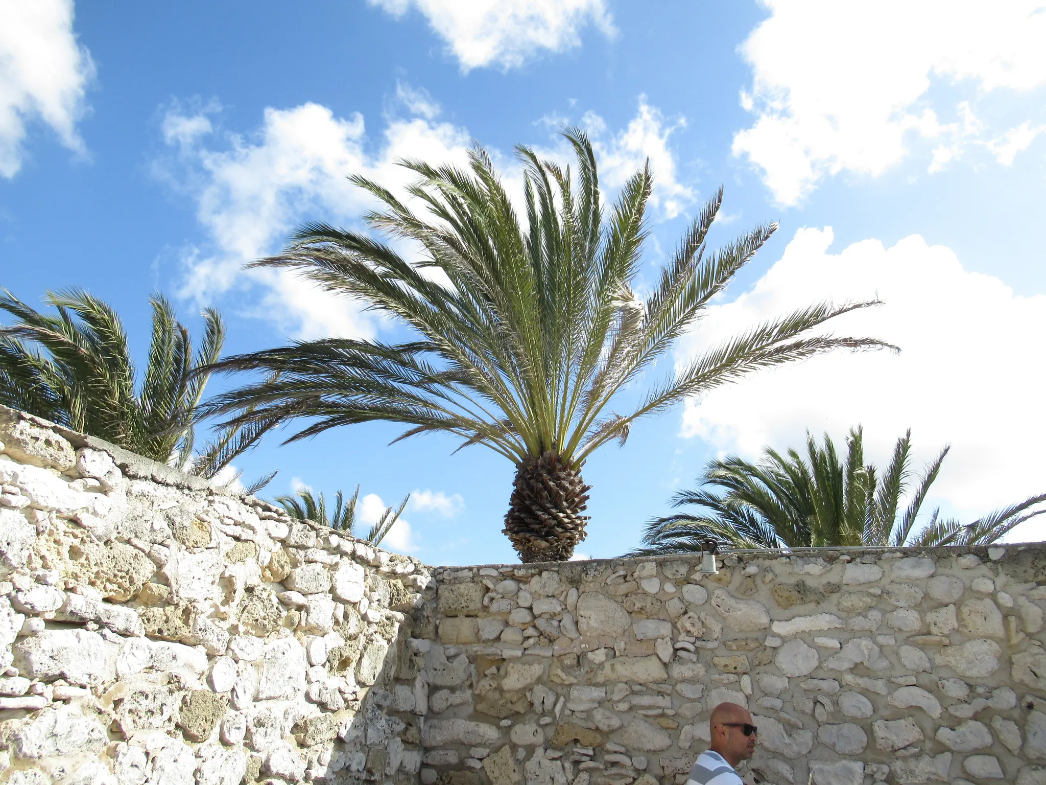 The fort. Travis had a cool fort-like pose looking out the opening. The fort and our guide showed us other places in town that had coral fossils built in.