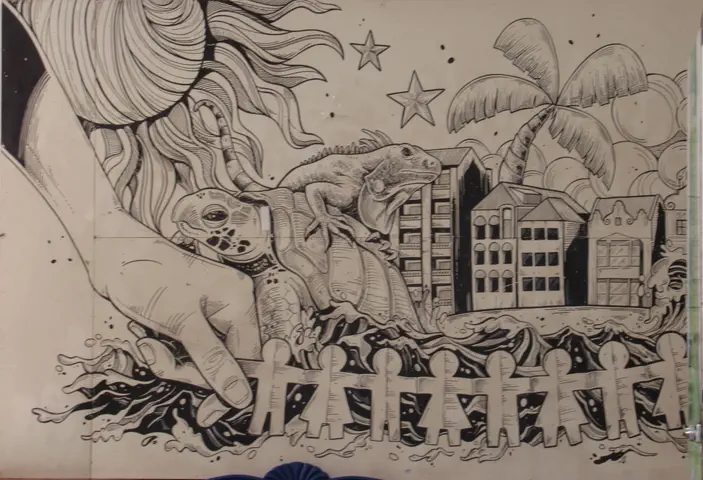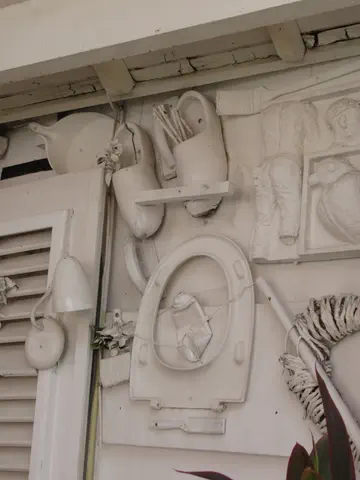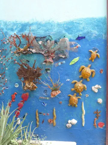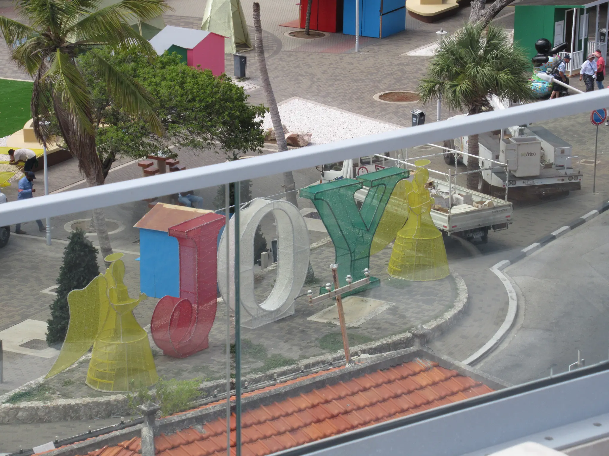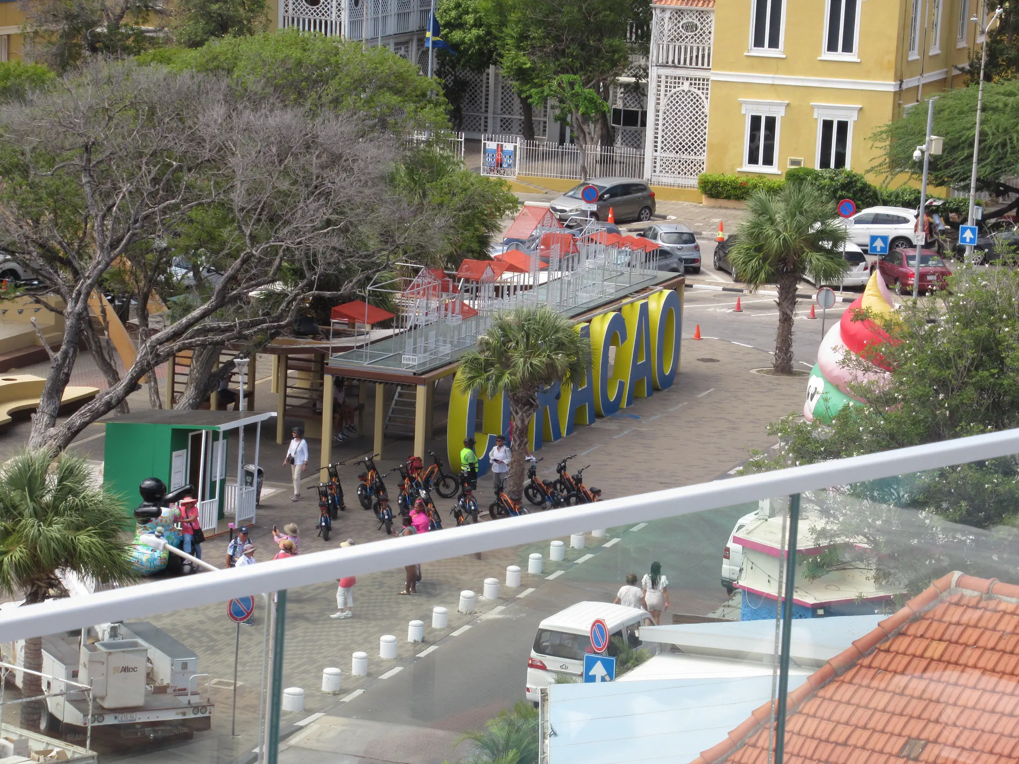 We stopped and sat here where this art was, while our guide went through information about Curacao. It was a hotel and restaurant. Our guide introduced us to the owner.