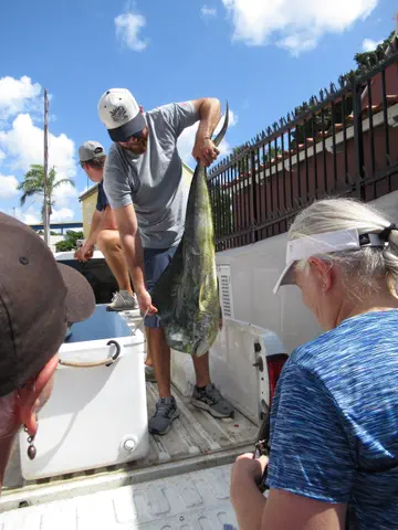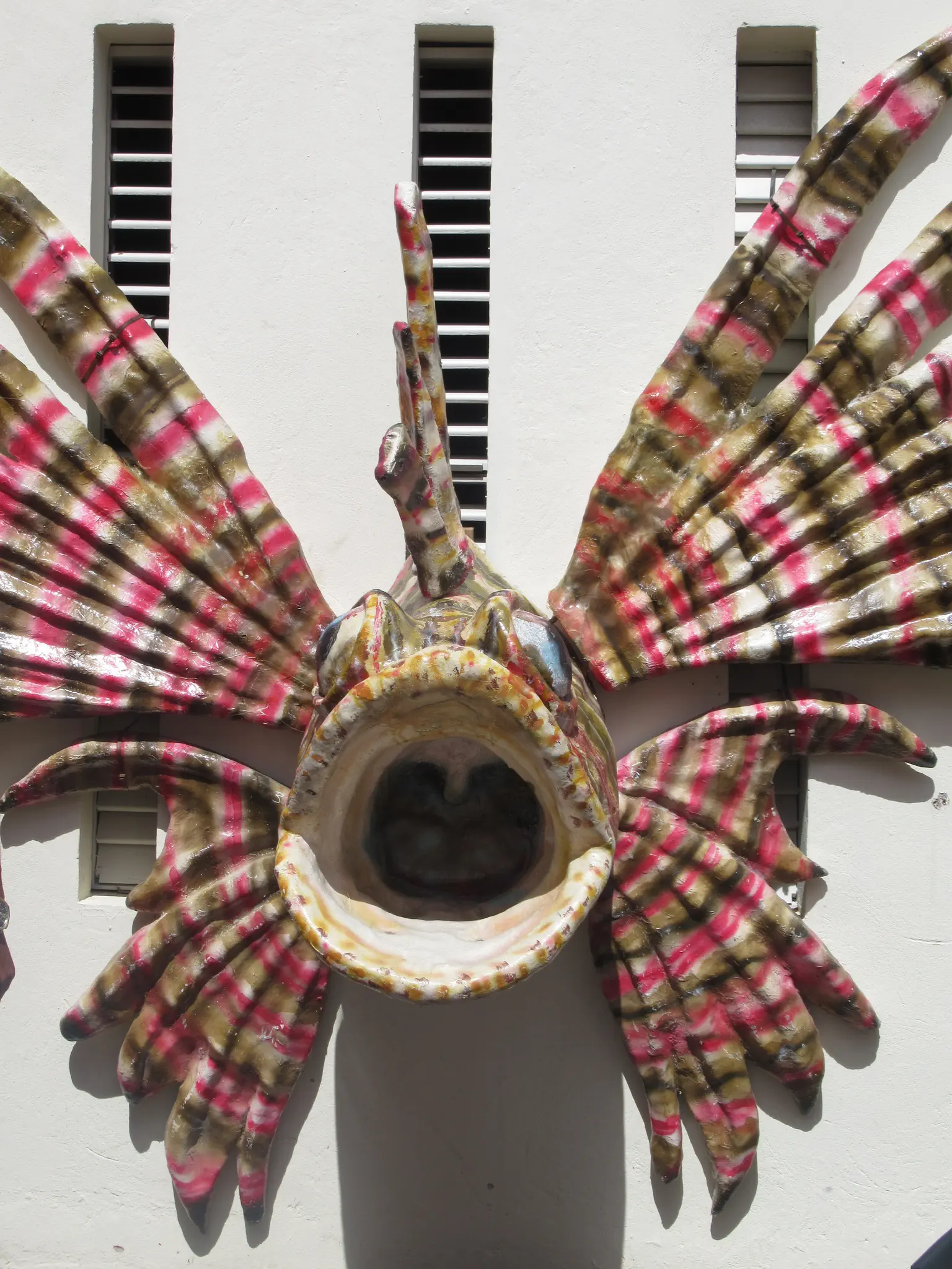 Pretty flowers. Some guys were unloading their catches, being sold to some local restaurants. He showed them off for us. We then went to a lionfish place. She explained that the lionfish is an invasive species that eats tons of their native fish at the reef and lay 30,000 eggs every 4 days. They are working to remove them. I bought a pair of earrings made from lionfish skin in support. Our credit card did not work, so I used cash. She did give up quickly. It worked at a grocery store later.