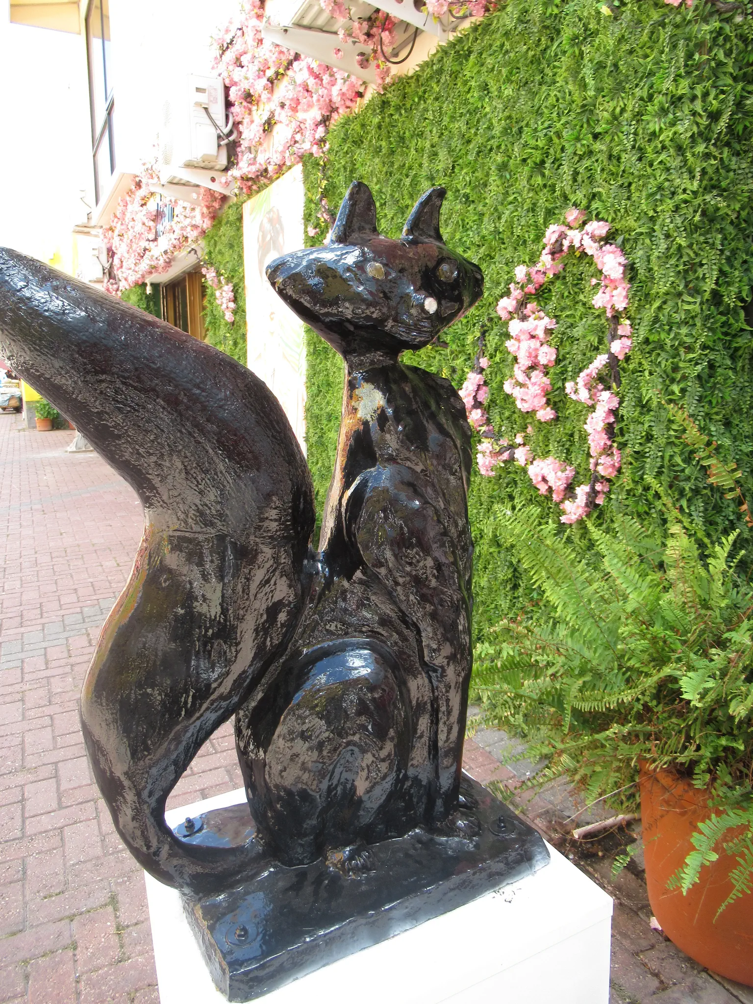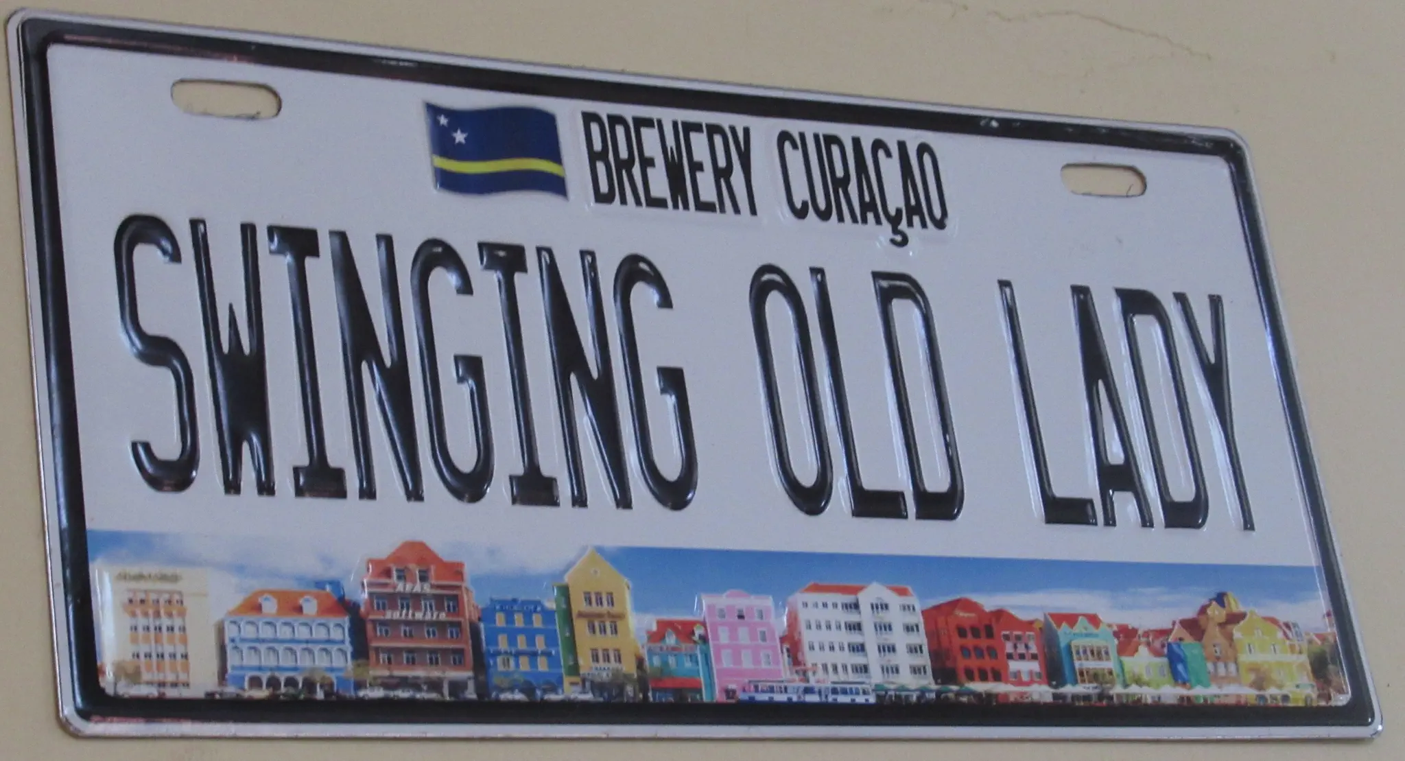 While still making the purchase, the tour went on to an art exhibit; we caught up later but did not see much there. We went across the Swinging Old Lady (Queen Emma Bridge) during our tour. The license plate was in the brewery. Some views.