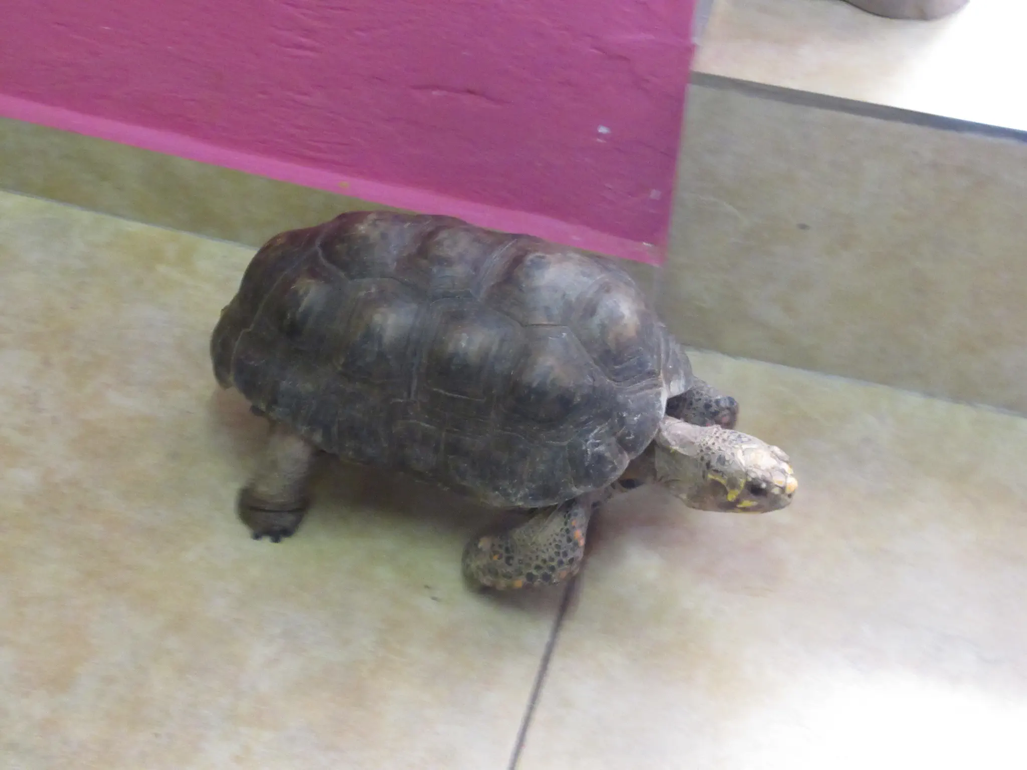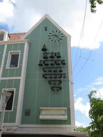 Umbrella alley. Carillon clock; I believe that he said it played the Curacao National Anthem in one of the hours. We did get to hear it play one song. Then we stopped a glass blowing shop that had two pet tortoises. They were so cute. This is the male; the female was being shy and was hiding under a shelf.