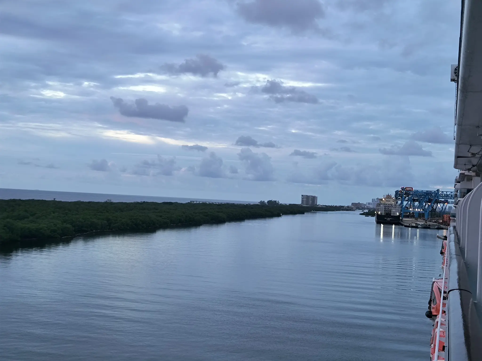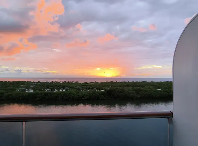 We arrived into Port Everglades where there was a pretty sunrise. We also saw a HAL and Royal Caribbean ships in port. There were lots of planes leaving from FLL airport, which is not too far west of the port. I took a picture of one because this was the first day that airlines were required to cancel 10% of flights due to the government shutdown, so it was good to see a lot of flights leaving Florida.