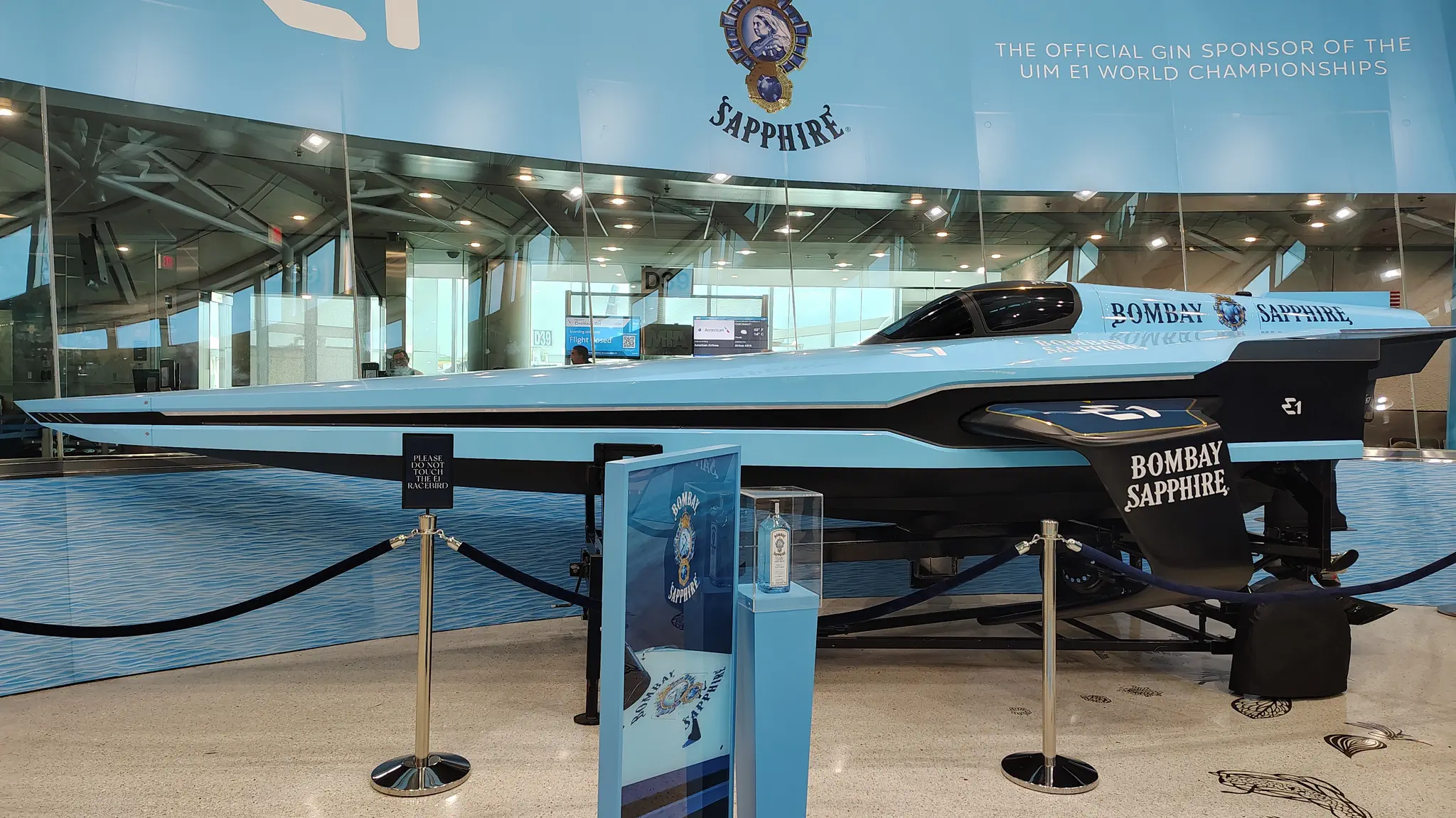 A sea racer at the airport. We luckily had no issues with our flight. We were on American to DFW; someone at dinner was telling us that they were less likely to cancel their hub flights. American has a hub in DFW. We have several maintenance delayed flights lately, which then ends in slow paperwork. But on this one, they kept announcing to get your butts in the seats (not in those words) because we have to leave on time. Otherwise, we will be backed up in the line to taxi and takeoff. There were also about 5 American employees on the flight; whereas, I would normally see 0 to maybe 2. I was speculating, but maybe they had to get their people back home after a future flights that they were supposed to have worked was cancelled, giving extra motivation to get home in time.