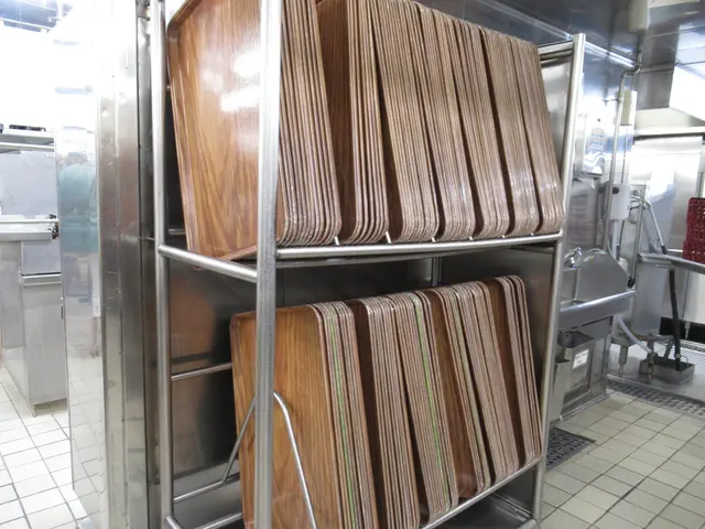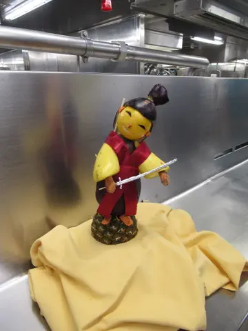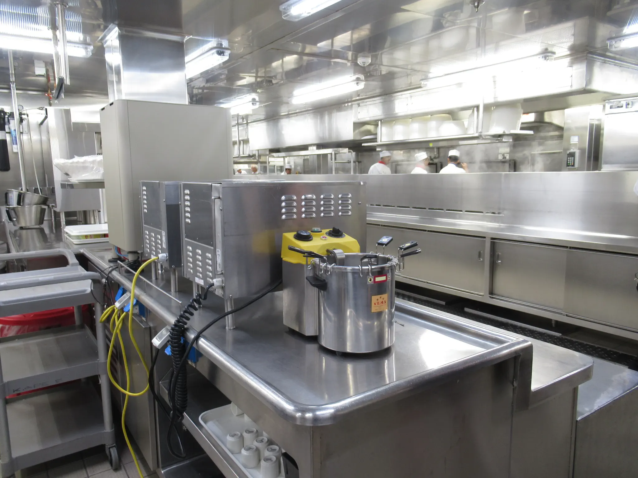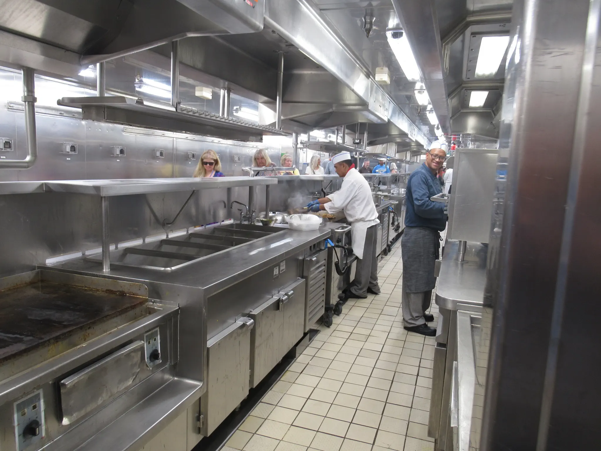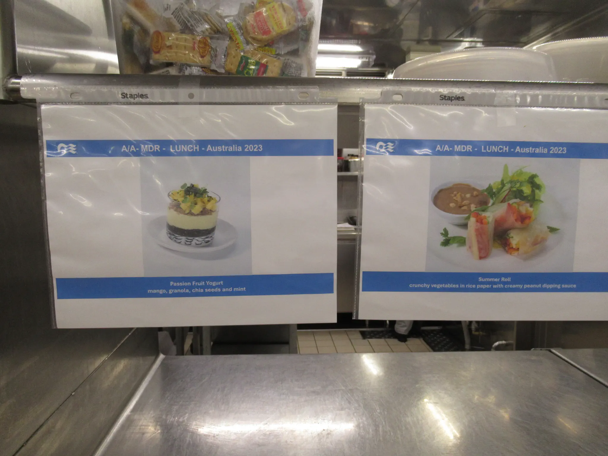 Galley tour -- trays that they bring out all the covered plates, stacked high on, what the food is supposed to look like and what is being served each day, and wow, they had an escalator in the crew area.