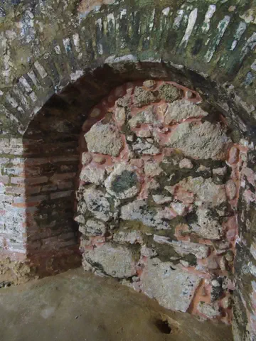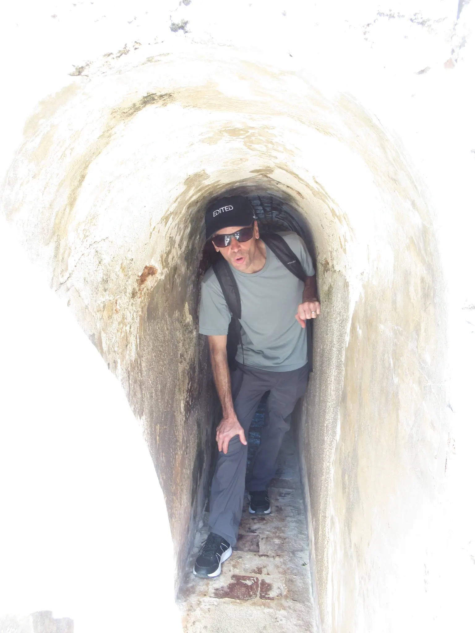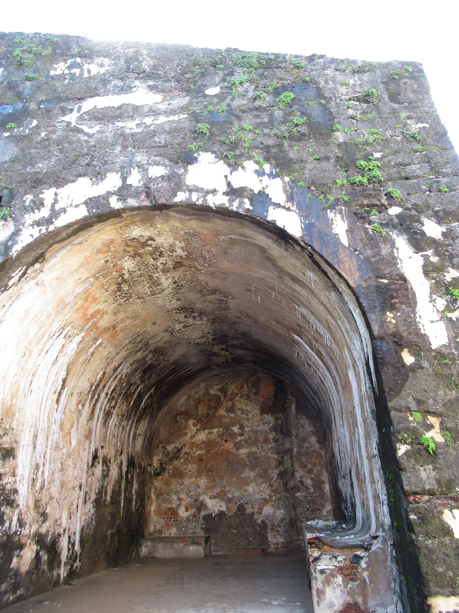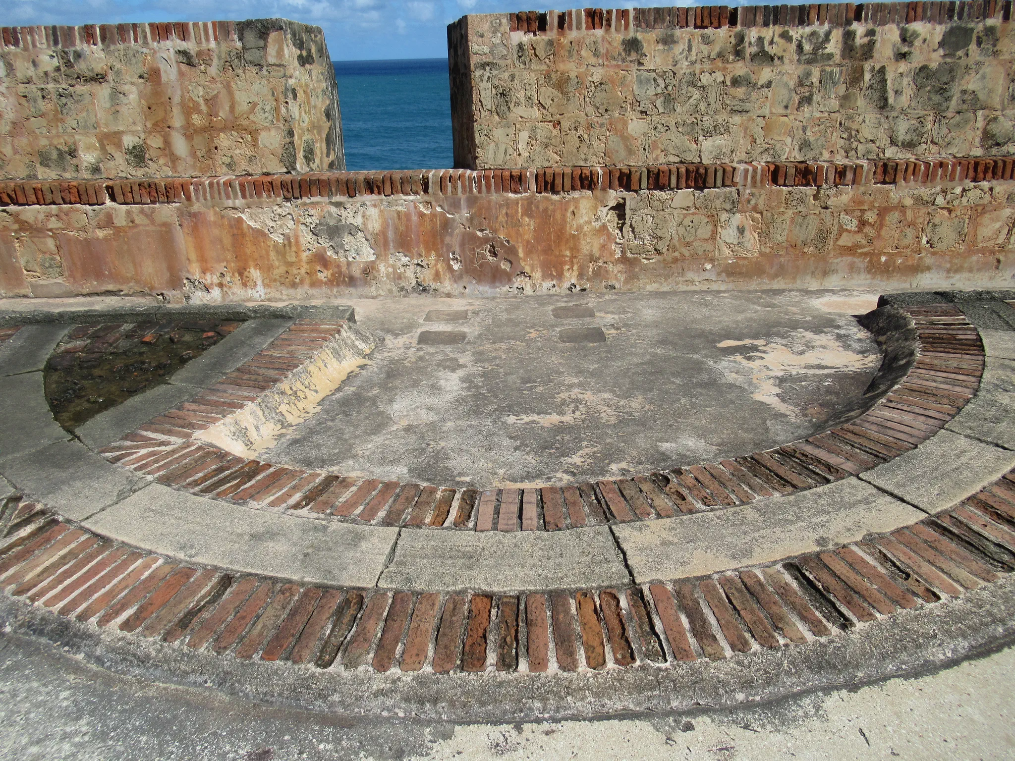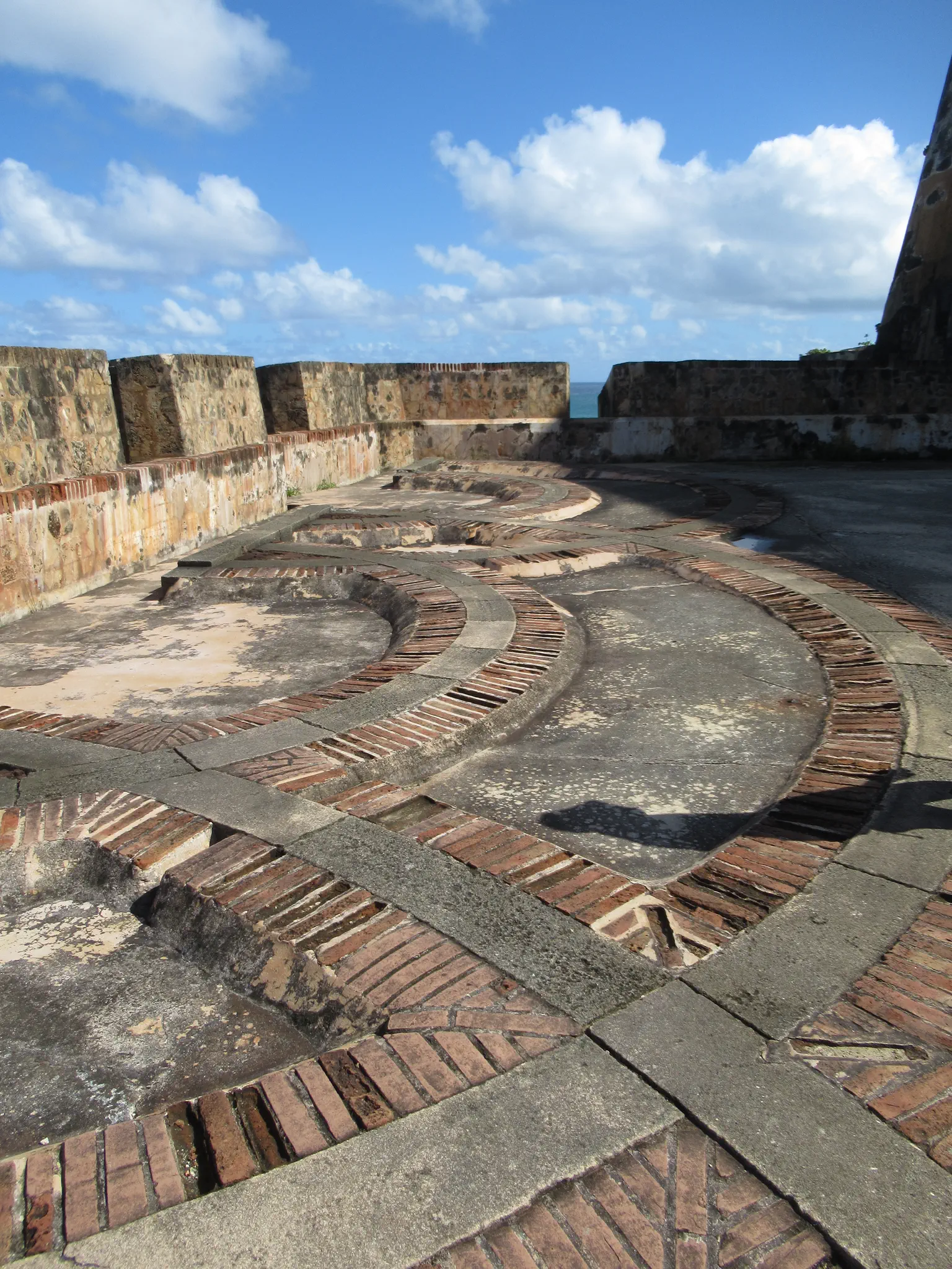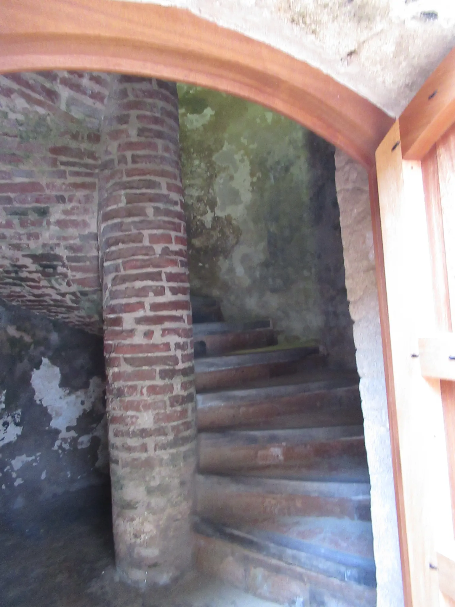 Wall at the top. The circular staircase. A great view down. We learned on the tour that that these semi-circles held the cannons.