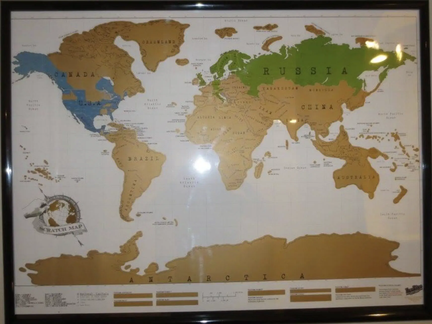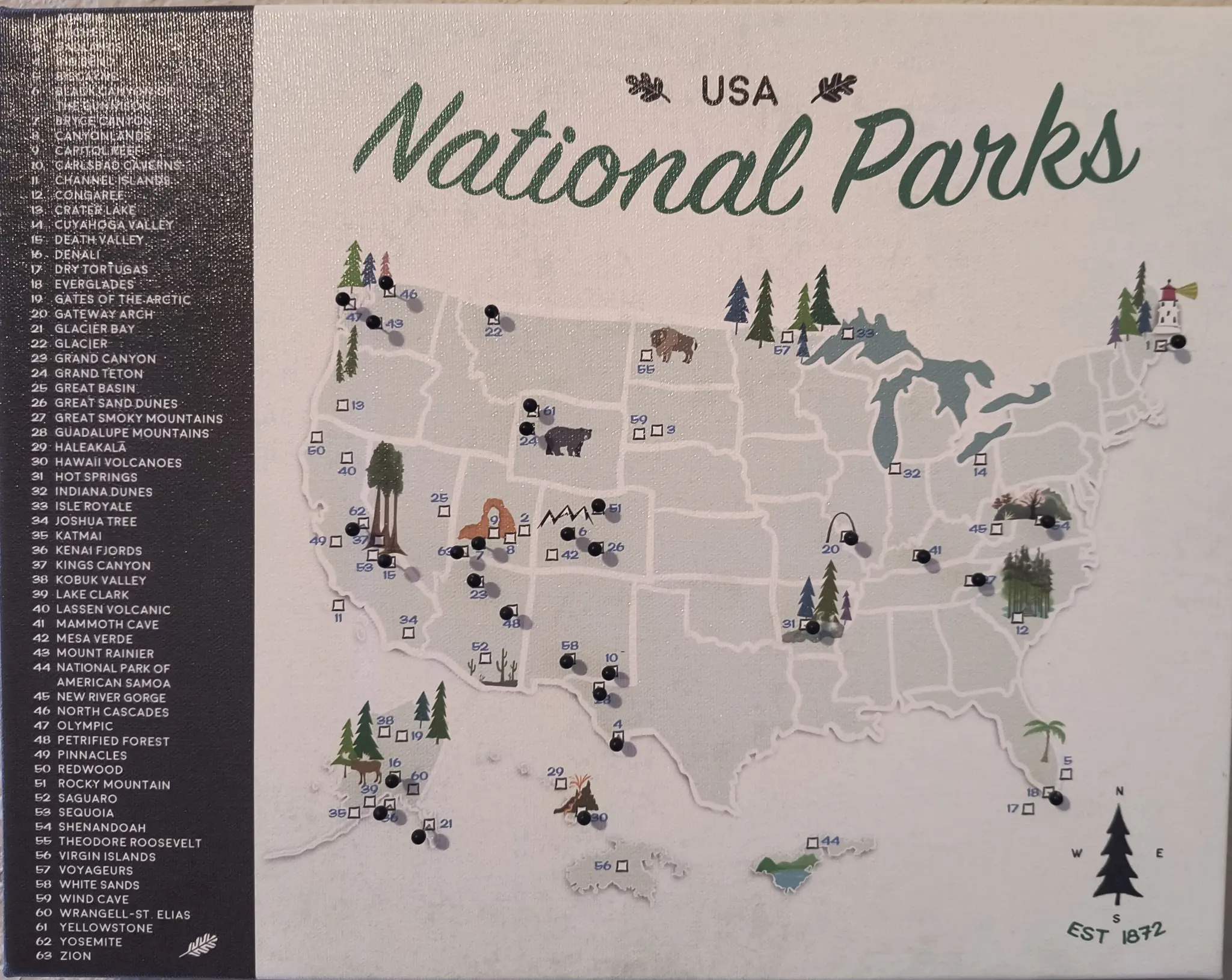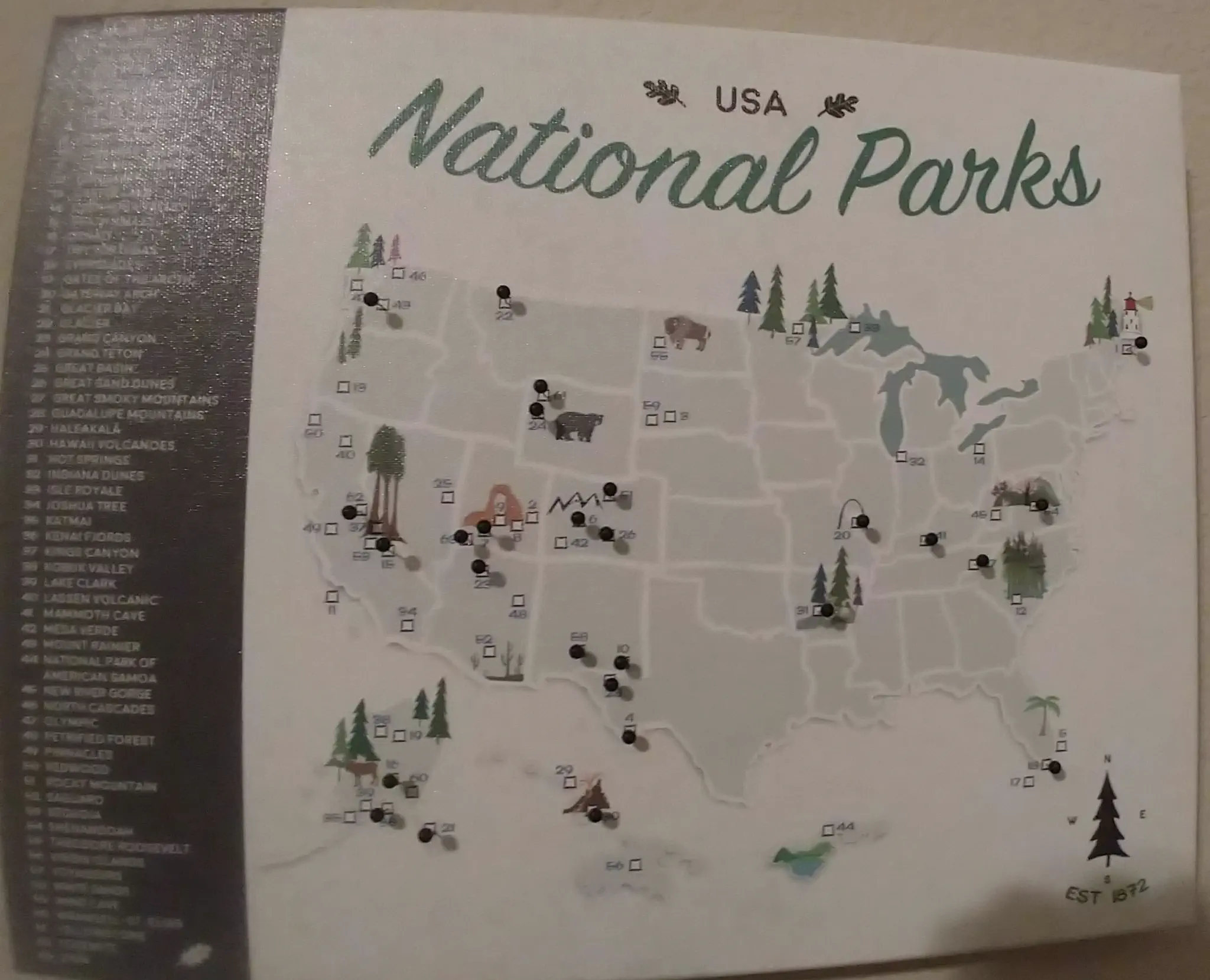 World scratch and U.S. National Park pin maps history; both from my sister. We have a lot more traveling to do.